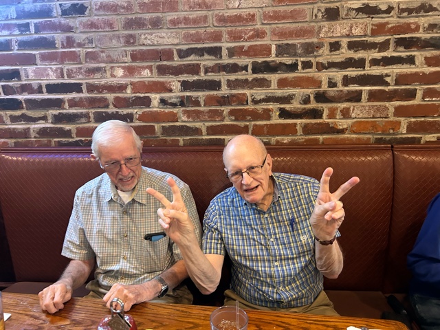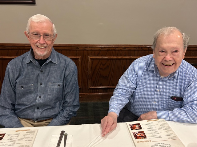 Our May lunch was honored by the presence of a special guest, Rich Schwan, who came all the way from Hermitage, TN. The nine Cadets present (Doyle, Layton, May, Monfort, Terry O'Brien, Pellegrini, Repovich, Tuminello, and Wiener) sure did enjoy seeing Rich again!