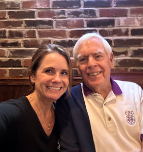 Our April lunch was honored to have two special guests, Philip Riley, President and Liz Millikan Director Of Leadership Giving at CBC (both of whom hosted our Class last month out at CBC). The nine Cadets present (Layton, May, Monfort, Terry O'Brien, Pellegrini, Repovich, Tuminello, Vogelsang and Wiener) sure did enjoy our guests. Philip Riley was also at our March lunch at CBC; he said that he really enjoys his time with us and said that Michael Jordan told him the Class of '58 is special.