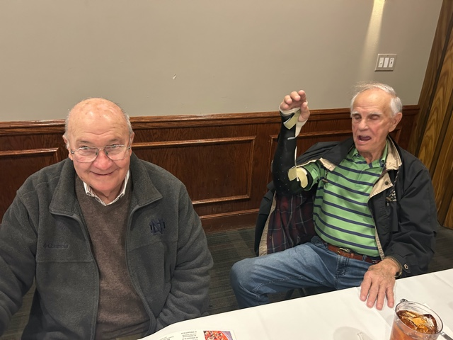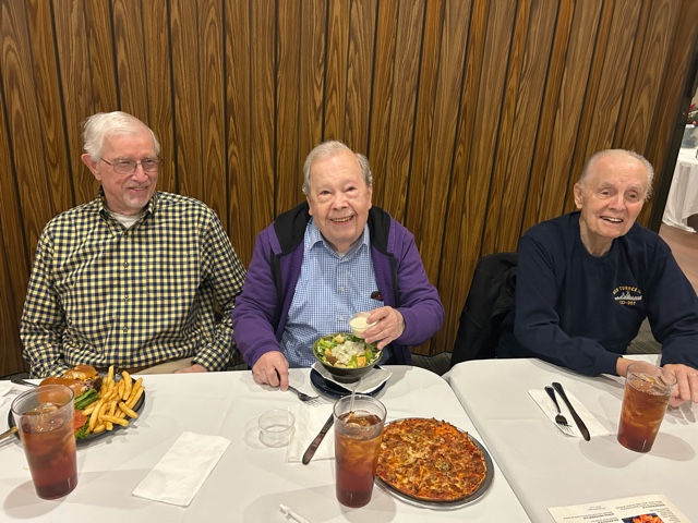 Defying Winter's bluster, we had nine guys show up at our lunch today, and we all had a grand time. Present and accounted for were Cadets May, Merker, Monfort, Terry O'Brien, Pellegini, Repovich,Tumminello, Wiener, and Vogelsang.