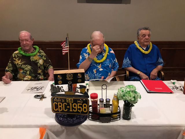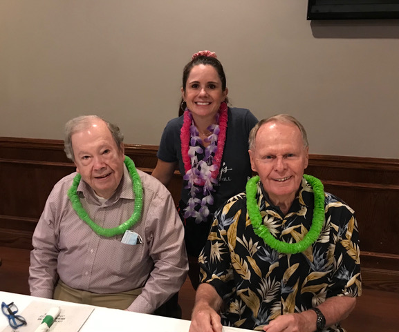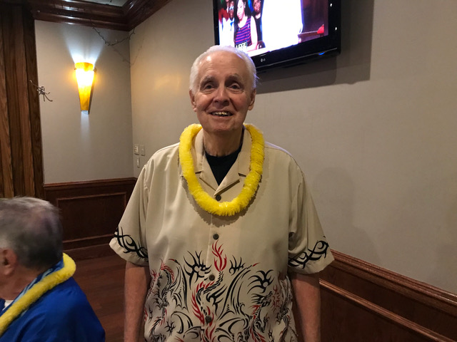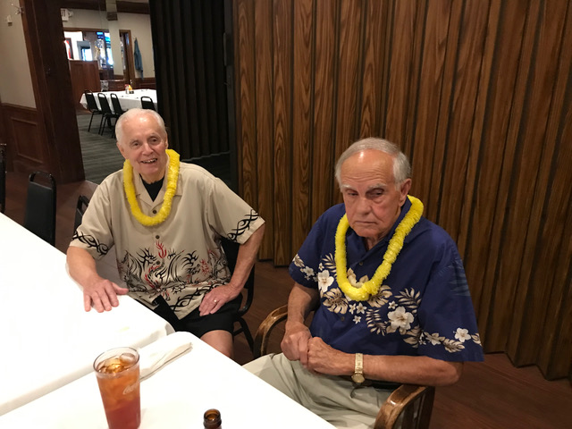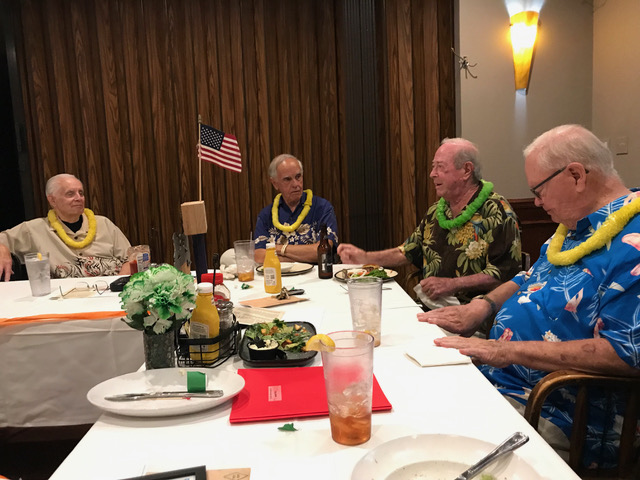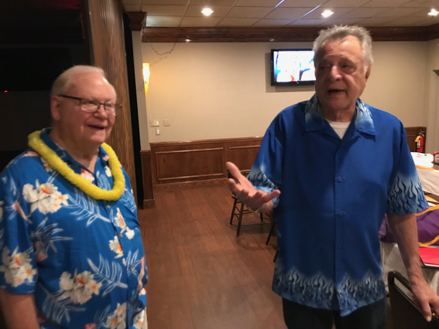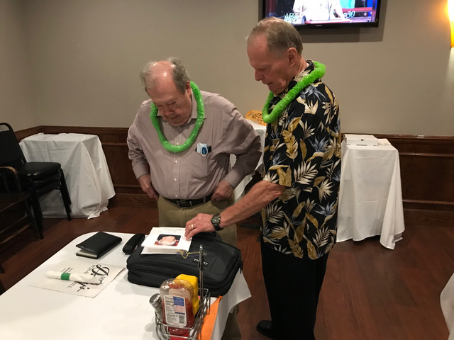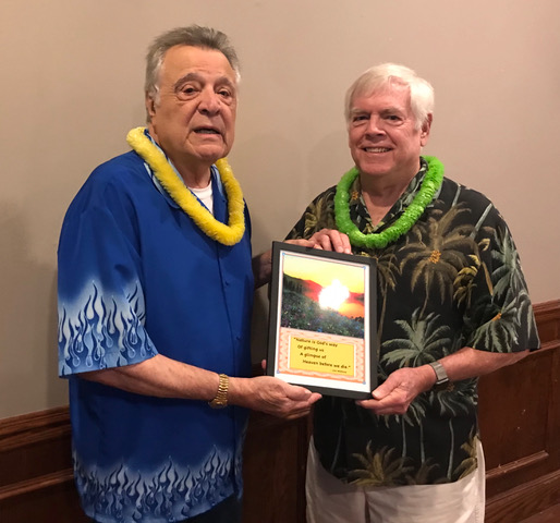 Jim presents Terry with an elegant and moving gift (see next picture) in appreciation for all Terry has done photographing our Lunches,