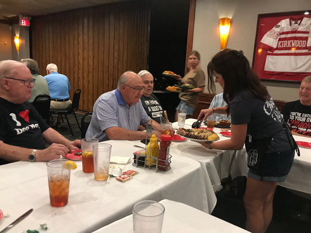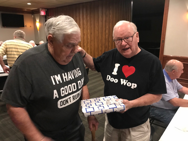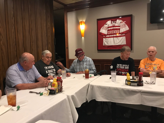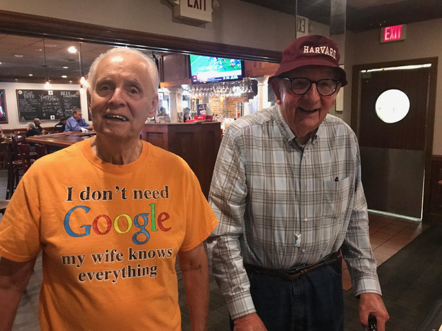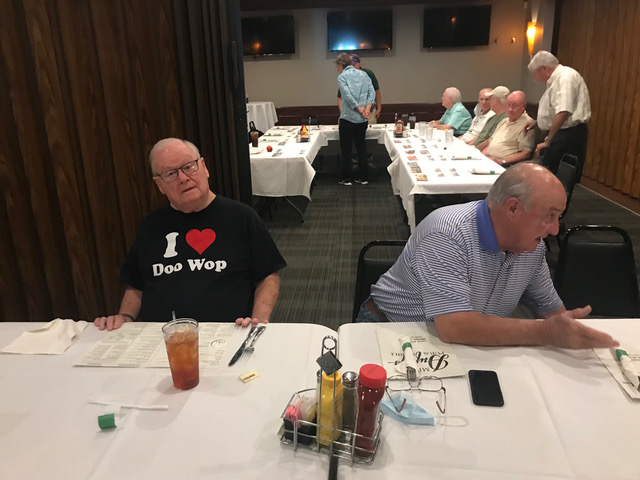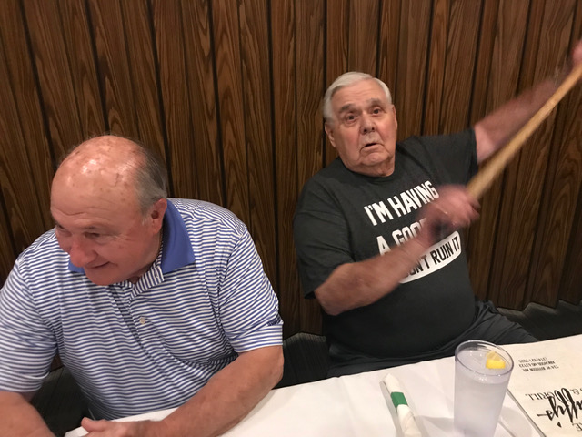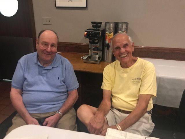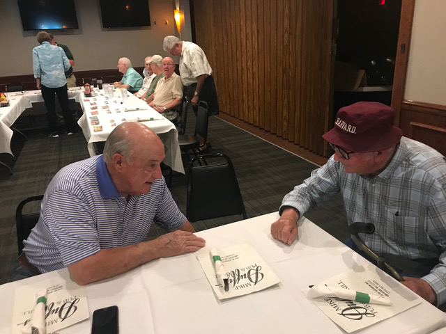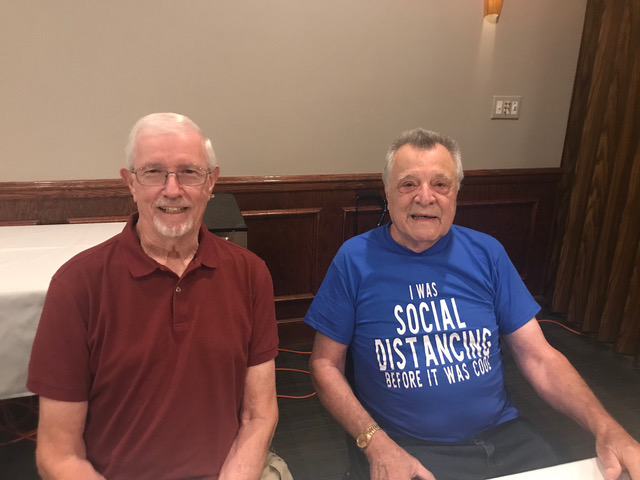 Art Repovich and Jim Mittino are straightening out what the theme of the Lunch actually is.