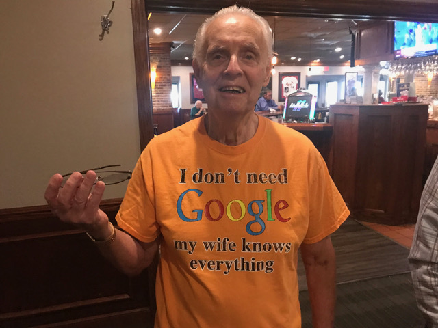 Jim Vogelsang conceived the theme for our September Lunch, in which attendees would be judged on the best T-shirt design.