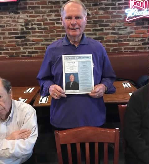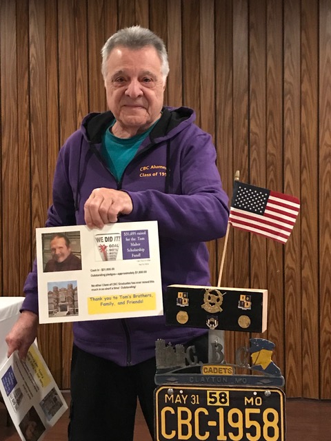 "We Did It". As another surprise, I was able to announce to the guys that as of today, $31,695.00 cash in hand has been received for the Tom Maher Scholarship. That means Tom's Scholarship is now an enduring self-sustaining CBC scholarship that can begin to assist in the education of "Men For Tomorrow—Brothers For Life'. There is also approximately $1,600 in outstanding pledges so far. We've done what we set out to do. Can I respectfully suggest that we keep in mind the continual demands on our school to keep providing faith-filled education to young men. So if you feel now or feel in the future you want to continue adding to the Tom Maher Scholarship—please follow your ideals."