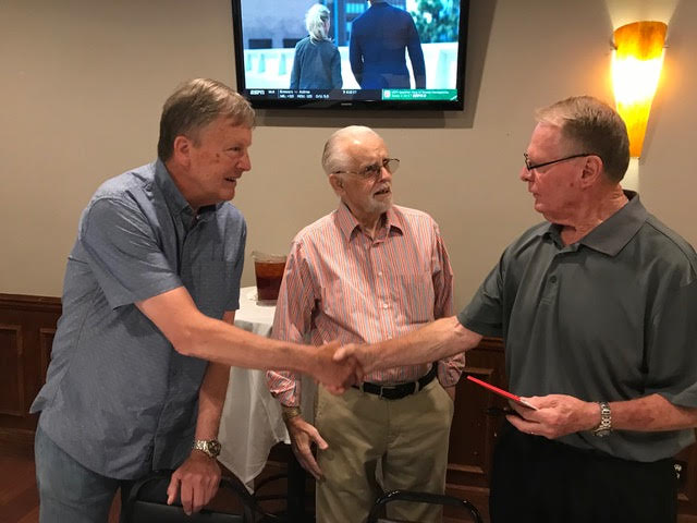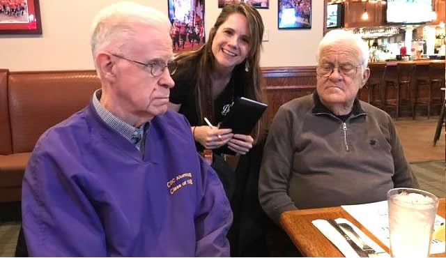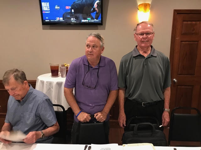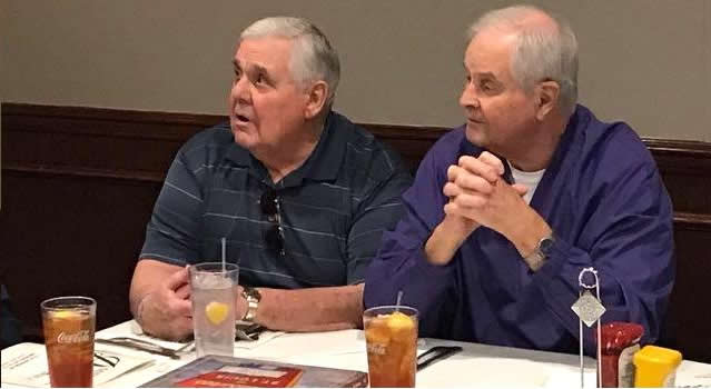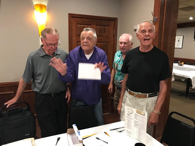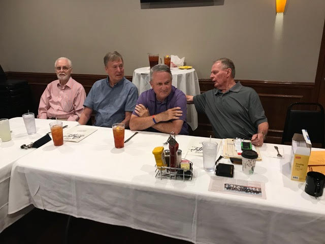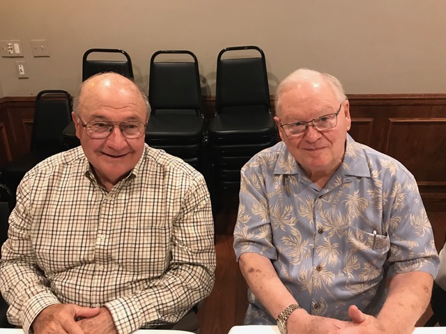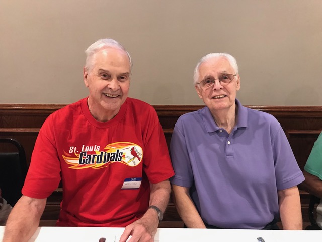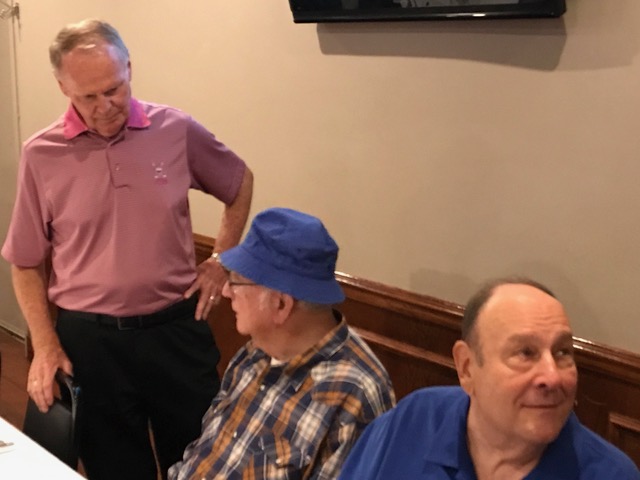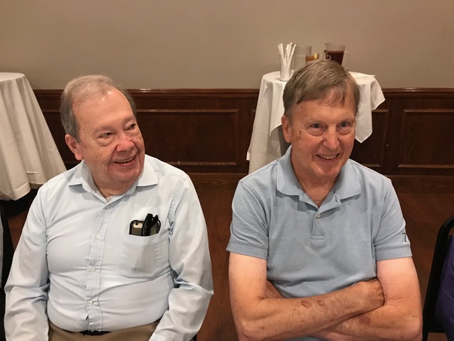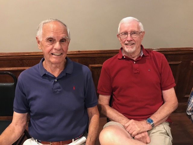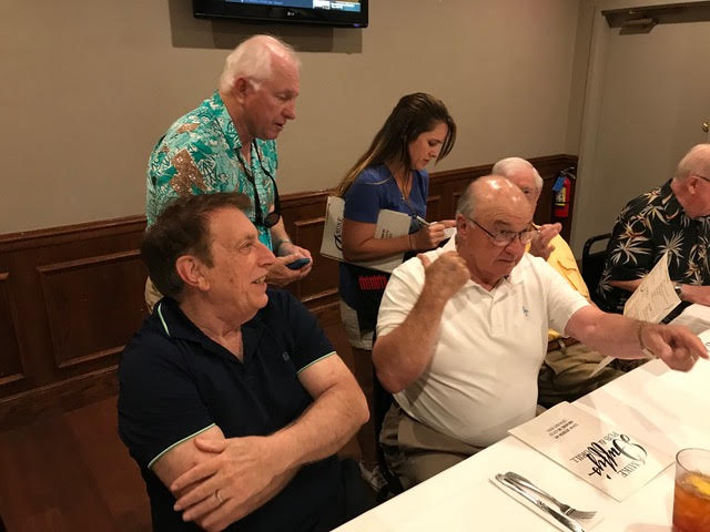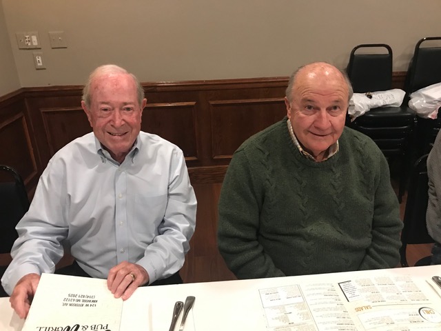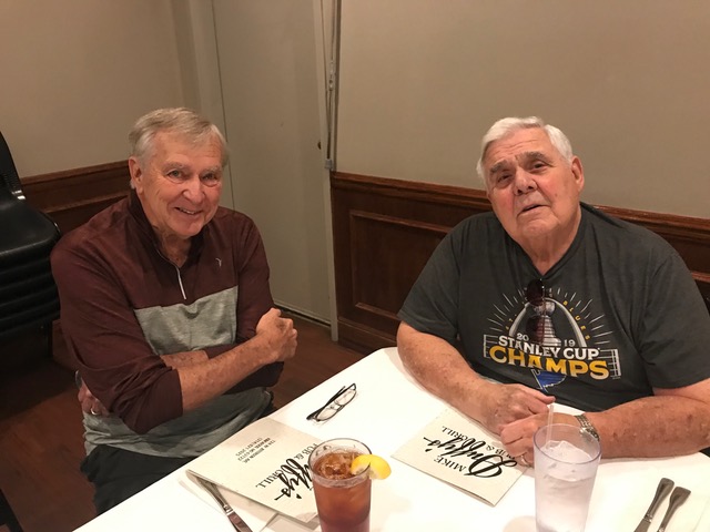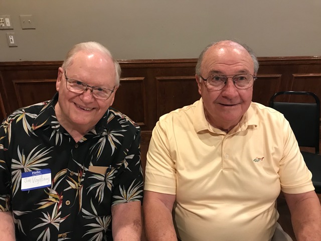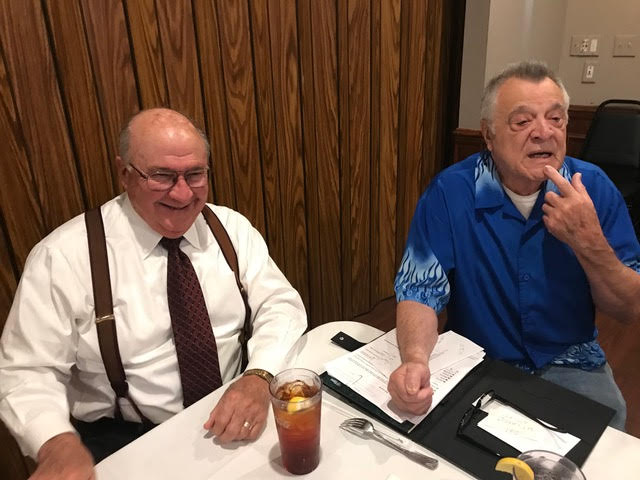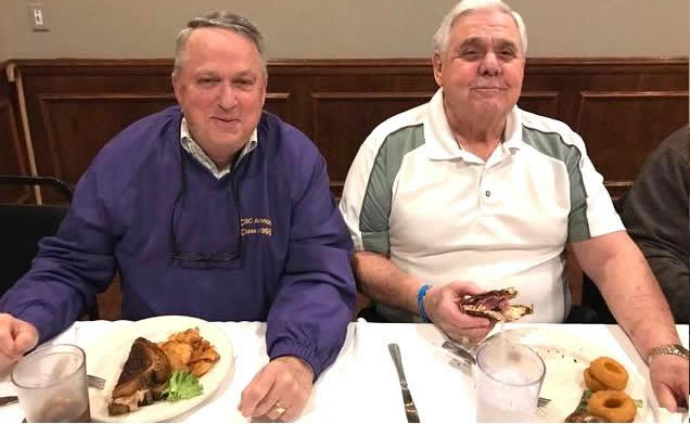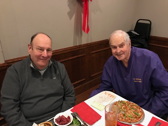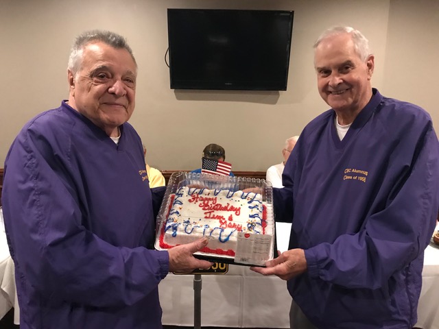 The October, 2019 Lunch was a busy, successful gathering. Plans were finalized for the Memorial Lunch scheduled for November, an update given on the Tom Maher Scholarship Fund Drive, and Geri Furi, visiting from Detroit, gave an online tour of the Class of 1958 website. The Lunch ended with a Birthday cedlebration for the month's Birthday Boys, Gary Hach and Jim Mittino.