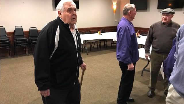 Denny seems puzzled no one is greeting him; Tim and Frank are ignoring him. (I could tell him why, but he might whomp me upside the head.)