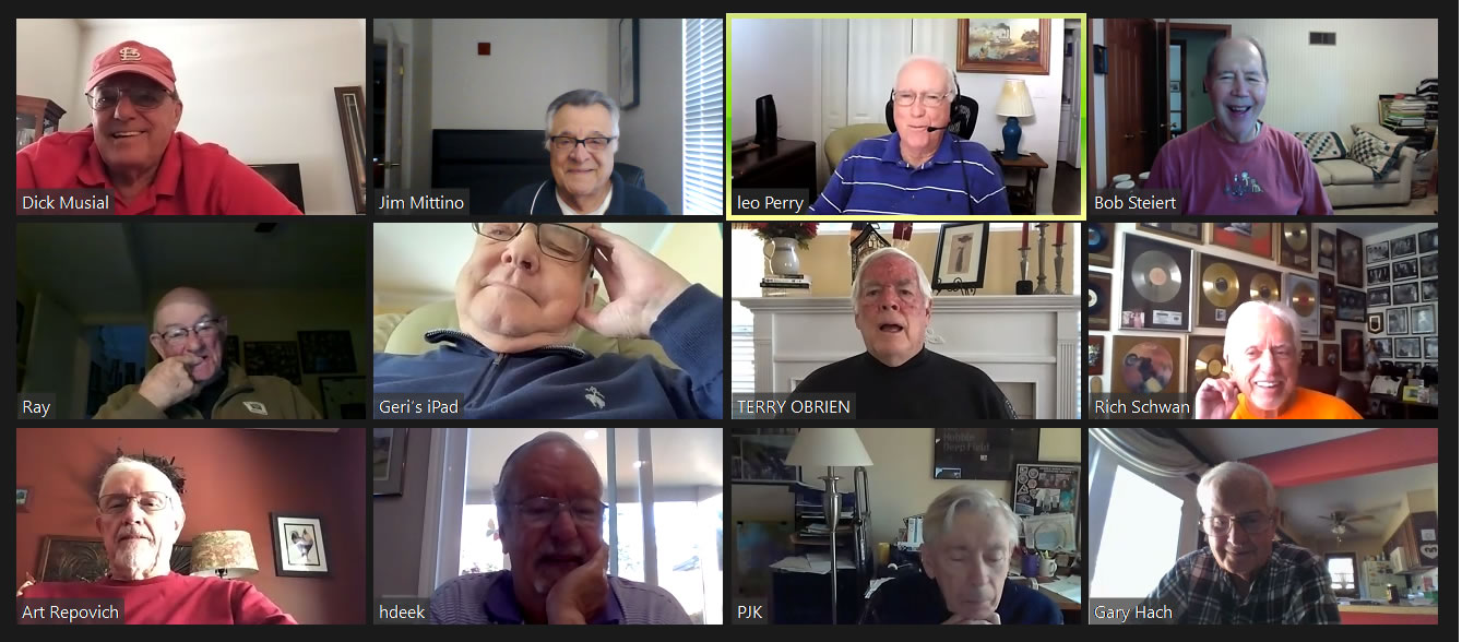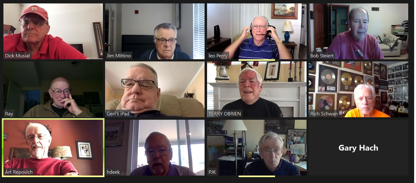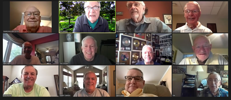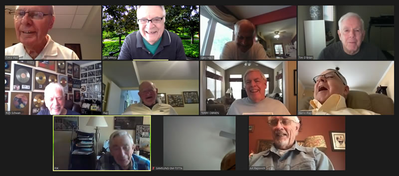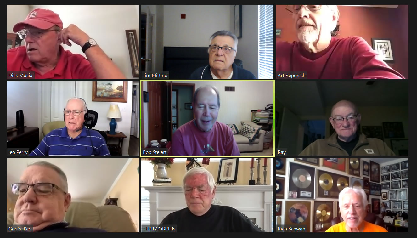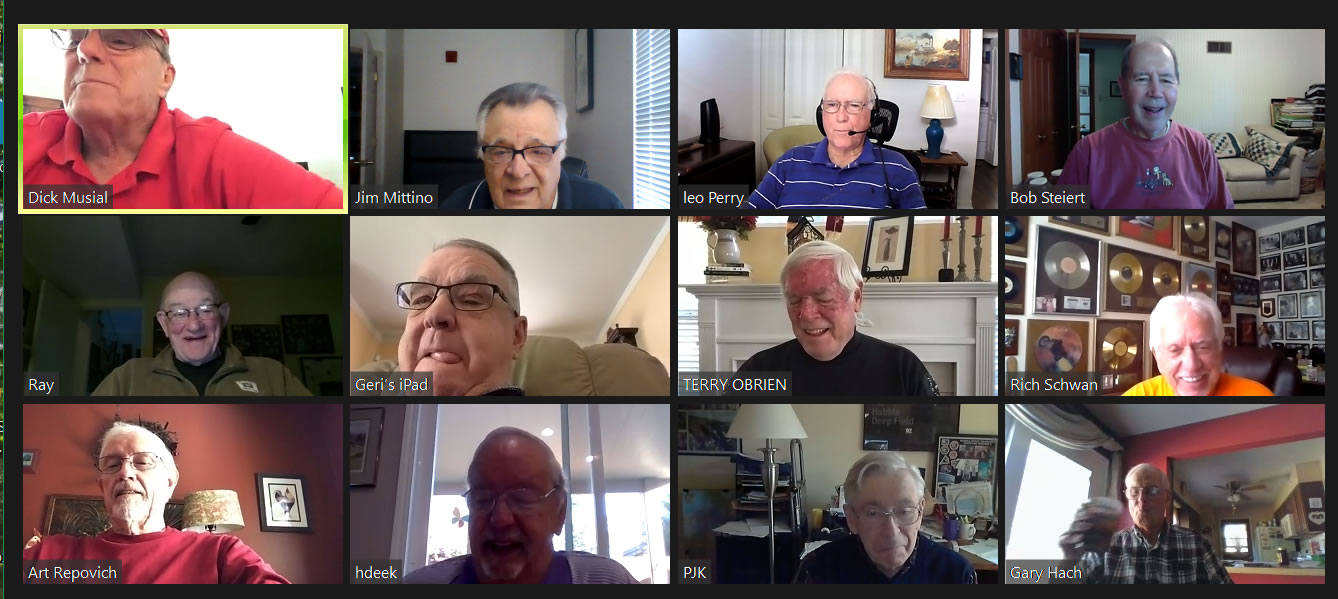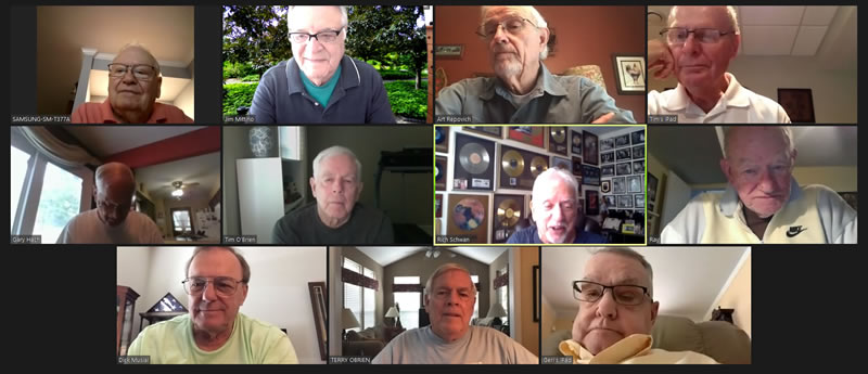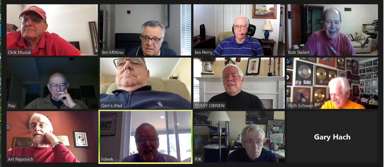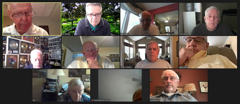 May 12 ZOOM Session—L-R: (Top Row) Bob Steiert, Jim Mittino, Hank Deeken, Tim O'Brien