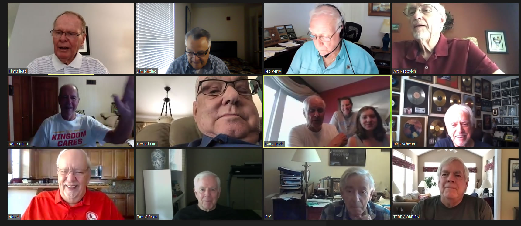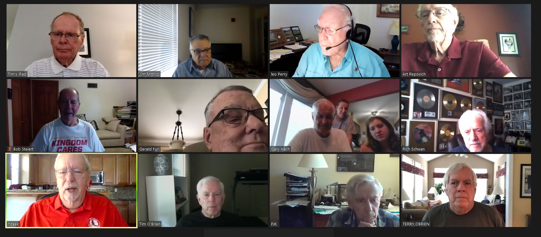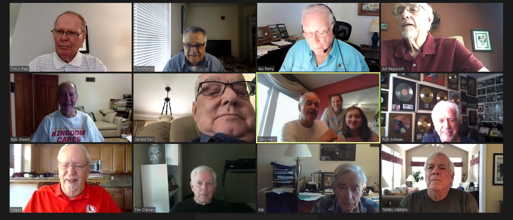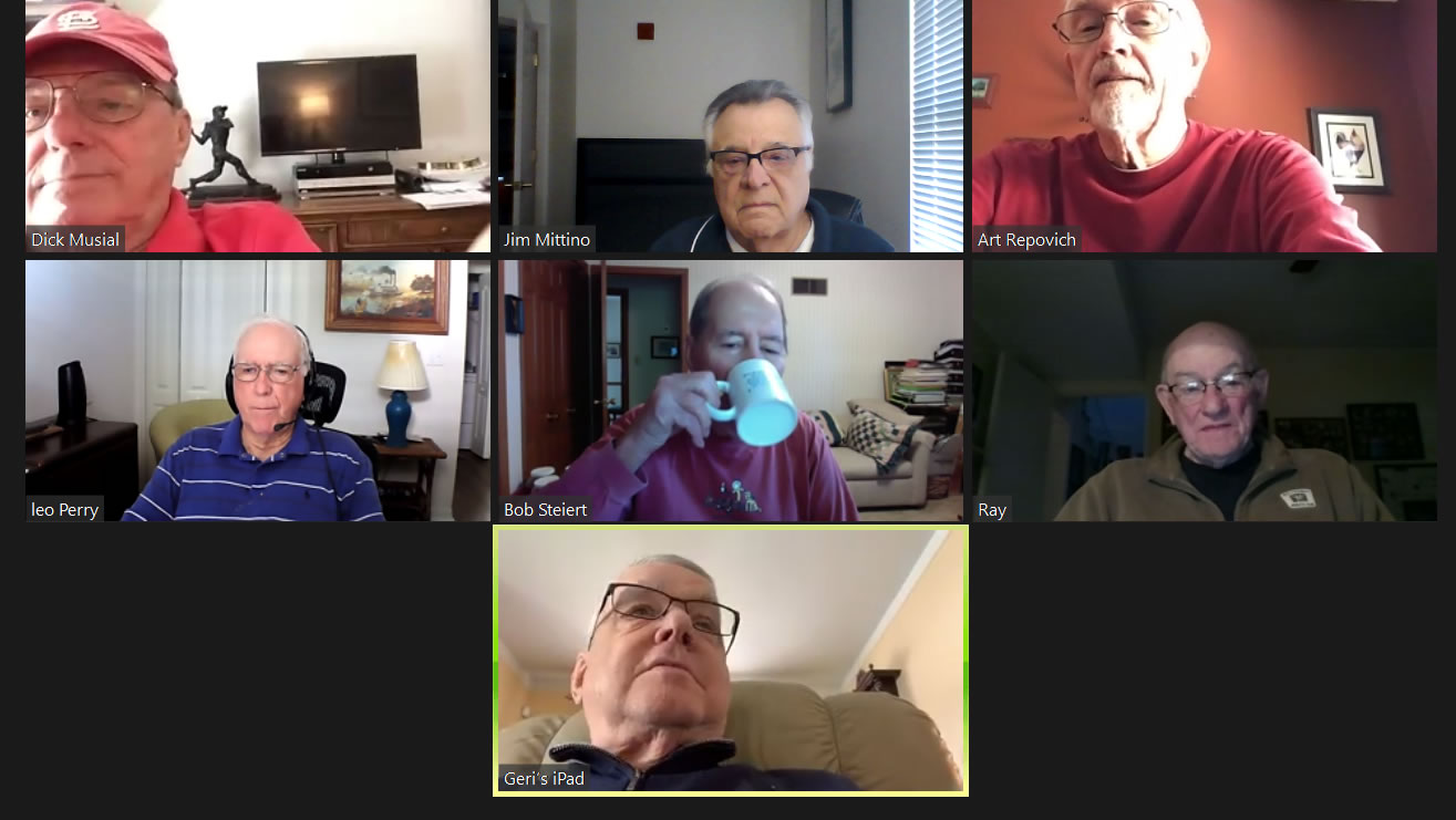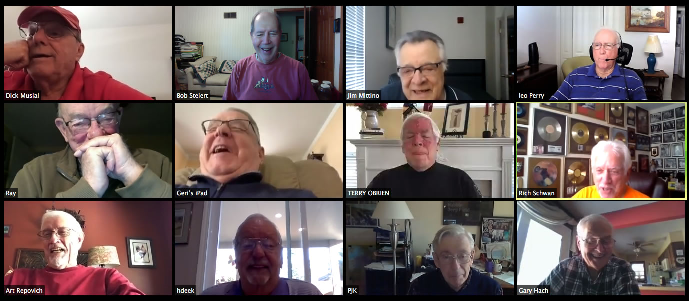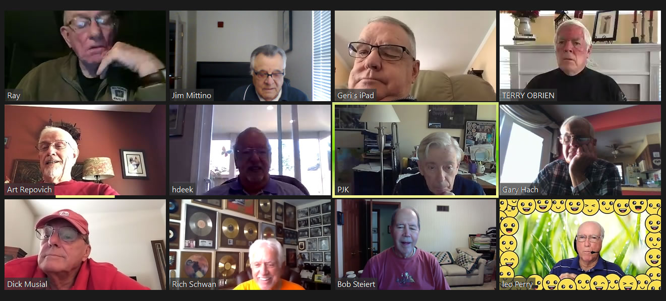 May 12 ZOOM Session—L-R: (Top Row) Bob Steiert, Jim Mittino, Hank Deeken, Tim O'Brien