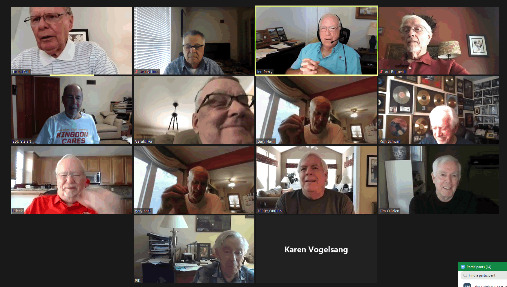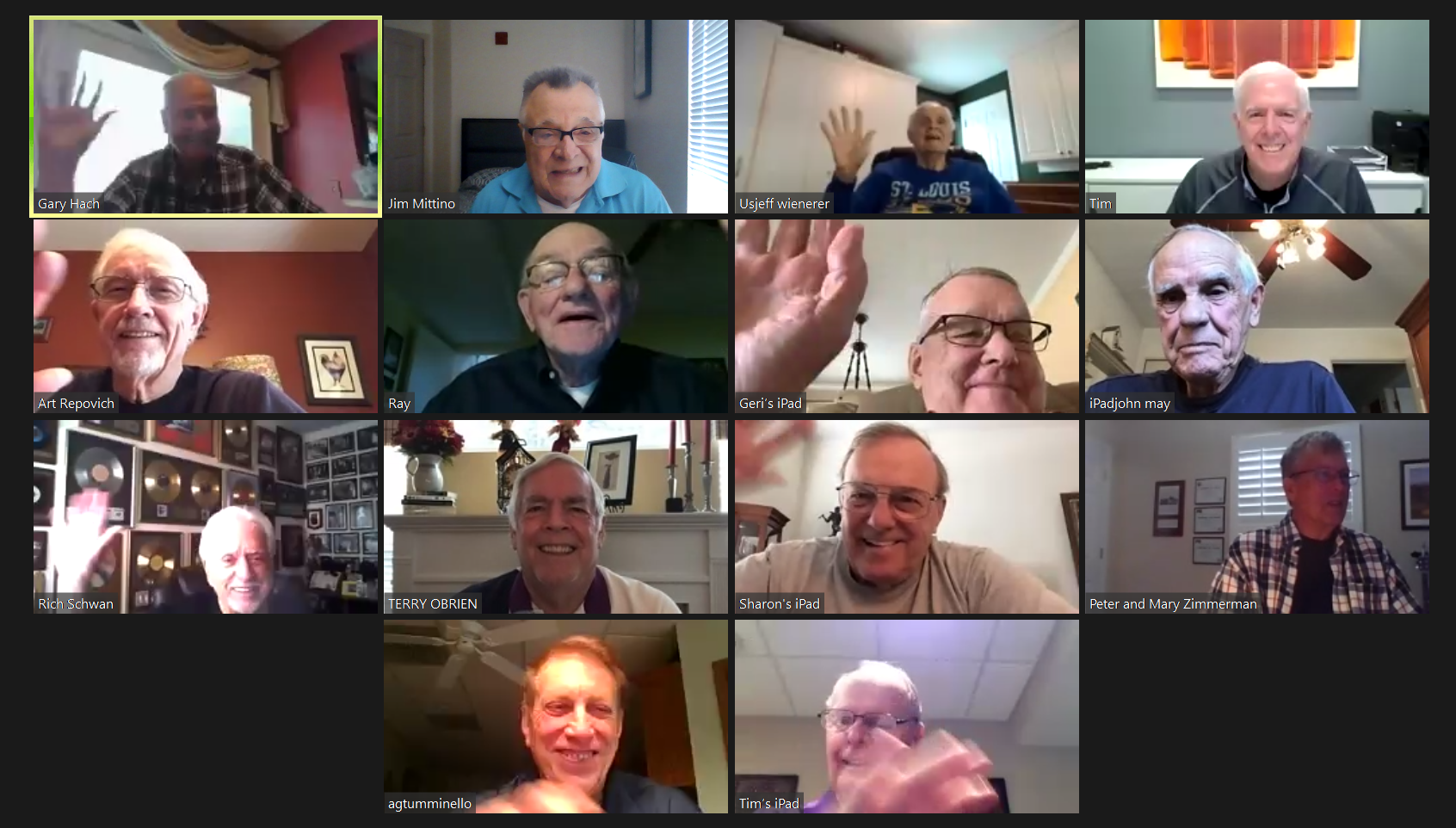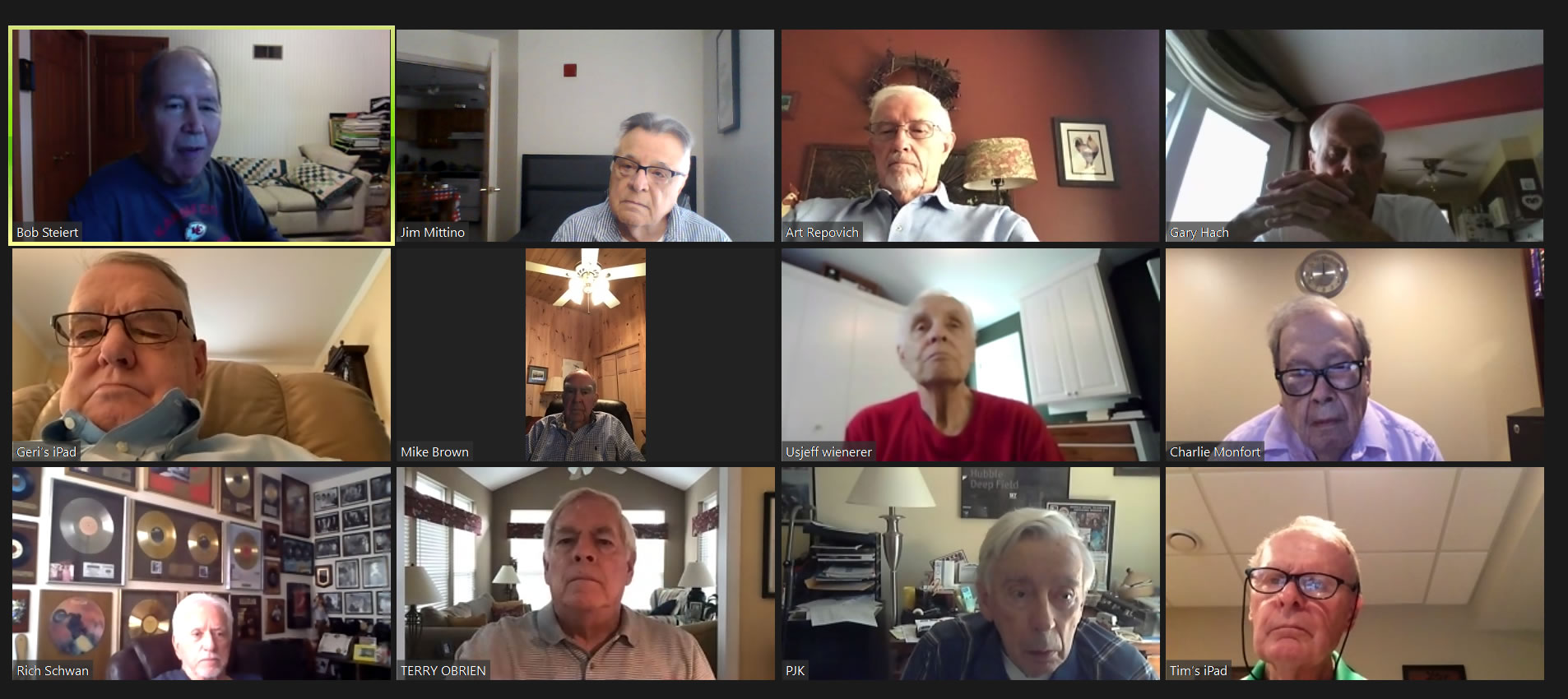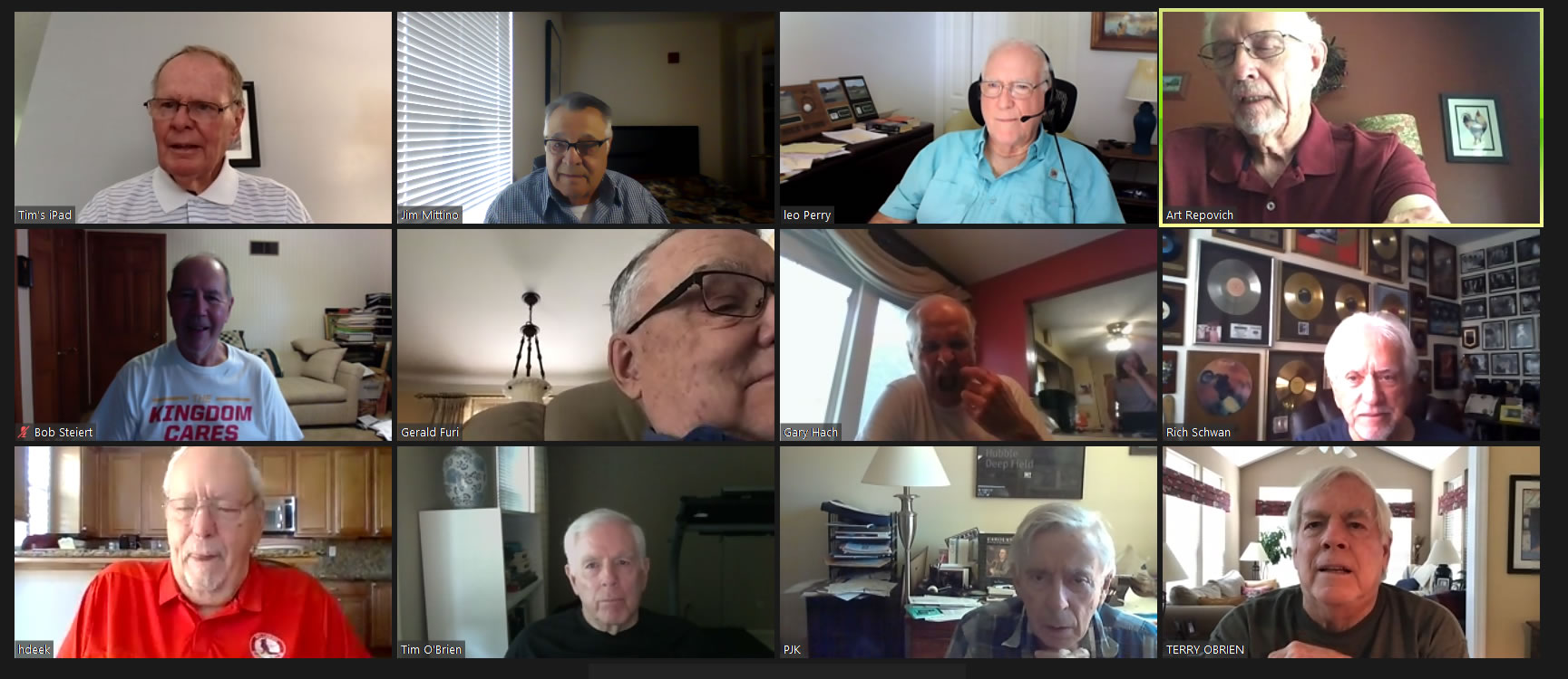 May 12 ZOOM Session—L-R: (Top Row) Bob Steiert, Jim Mittino, Hank Deeken, Tim O'Brien
