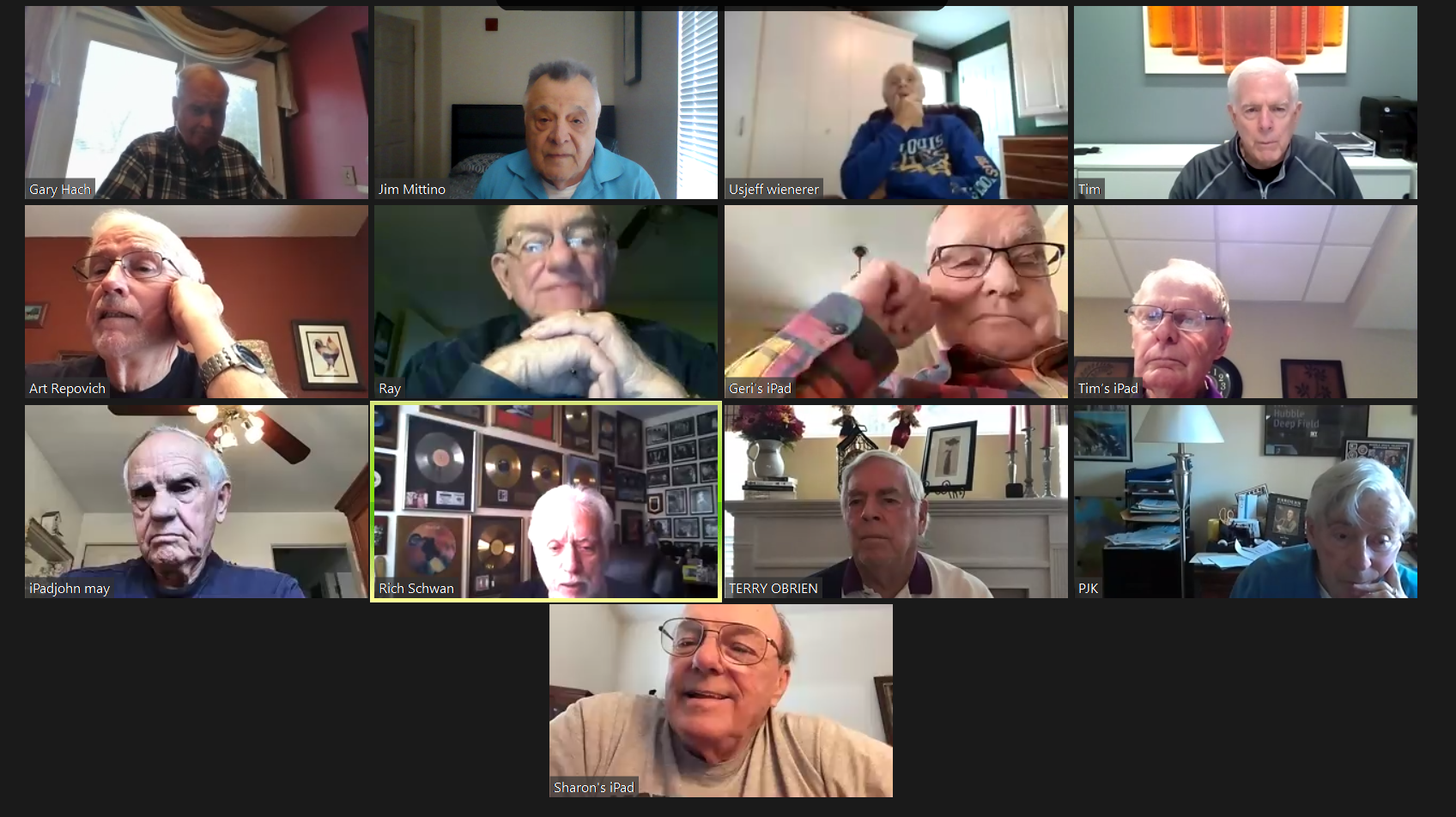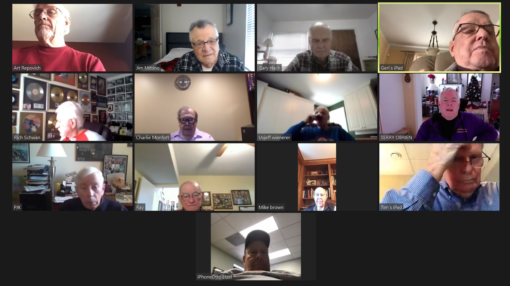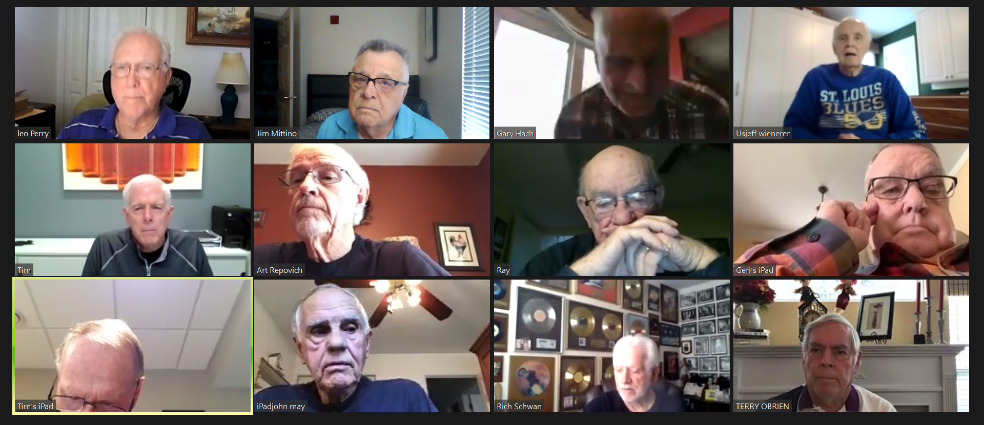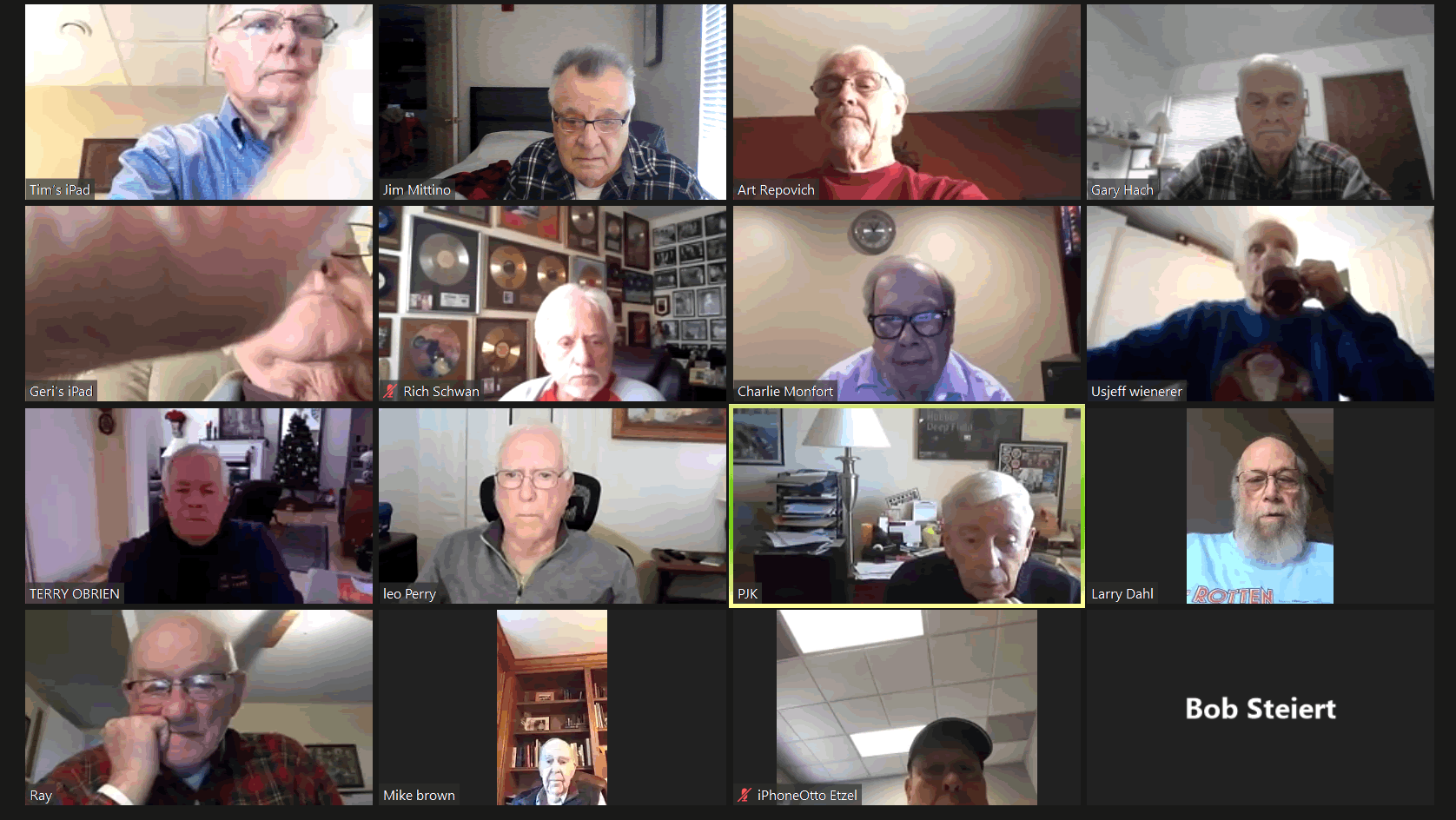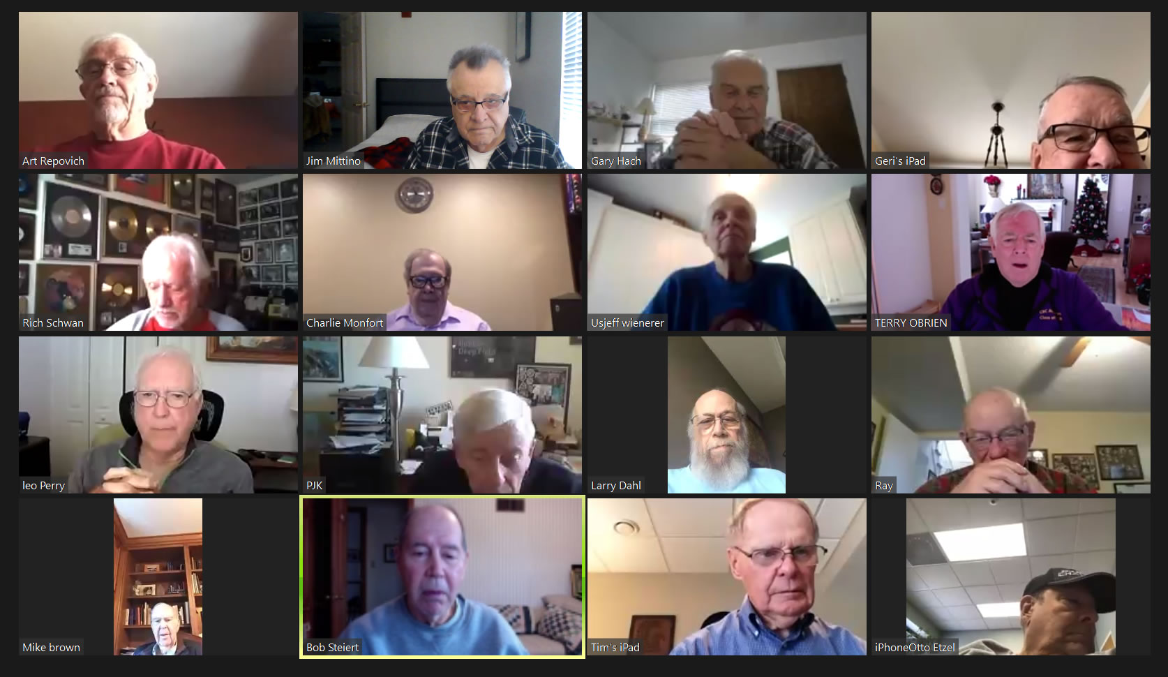 May 12 ZOOM Session—L-R: (Top Row) Bob Steiert, Jim Mittino, Hank Deeken, Tim O'Brien