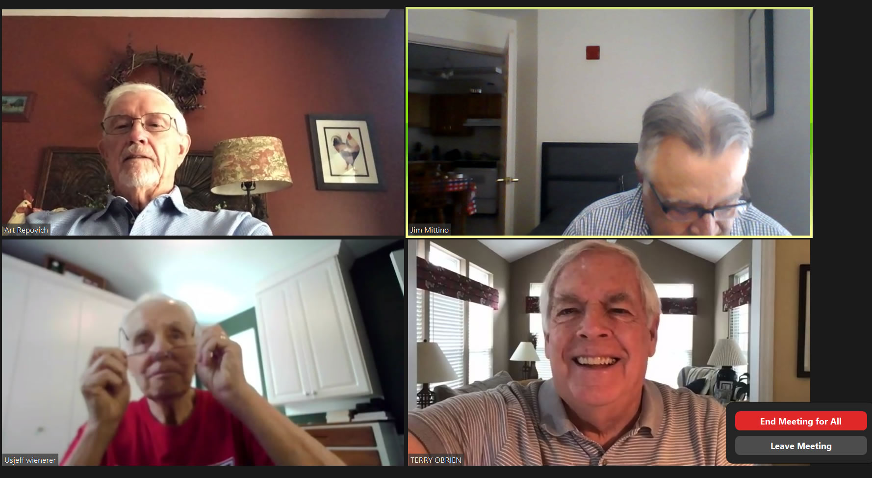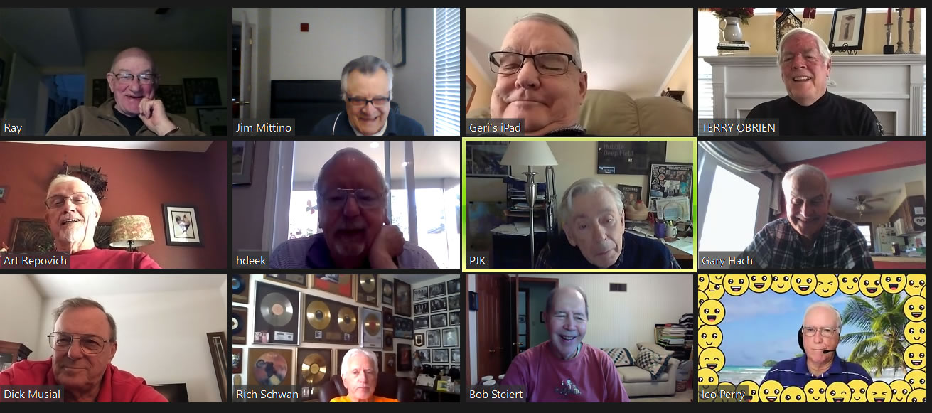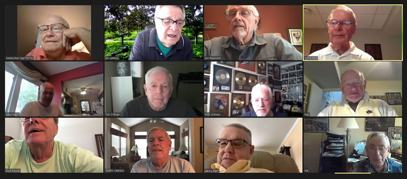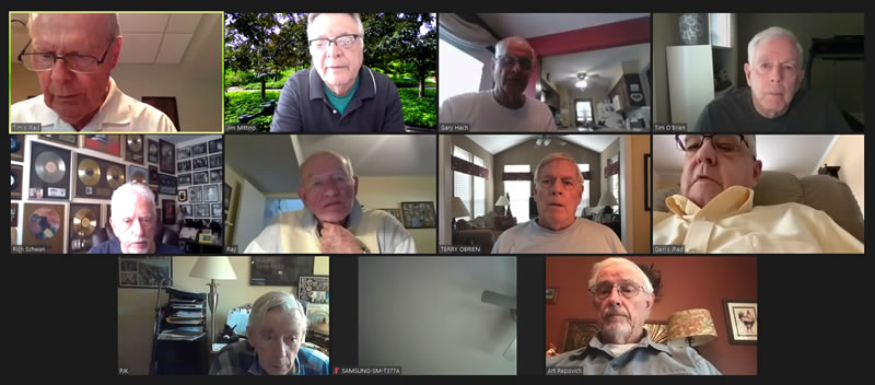 May 22 ZOOM Session (Screen 2)—L-right: (Top Row) Jim Mittino, Bob Steiert, Jim Mercurio, Tim O'Brien