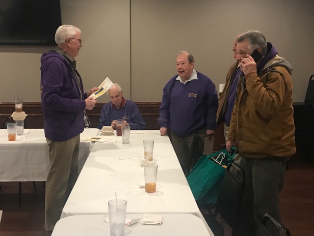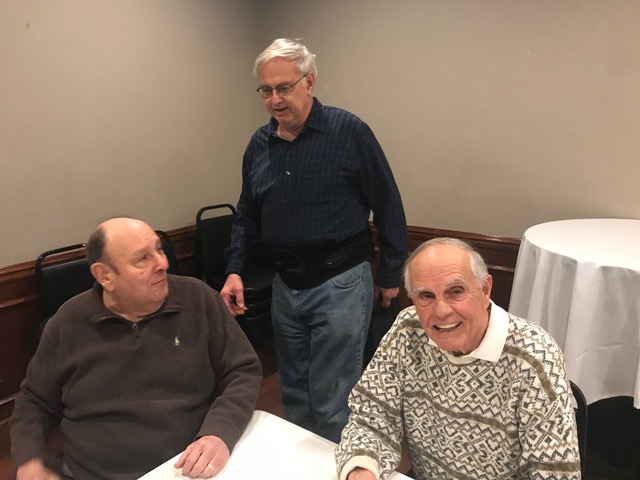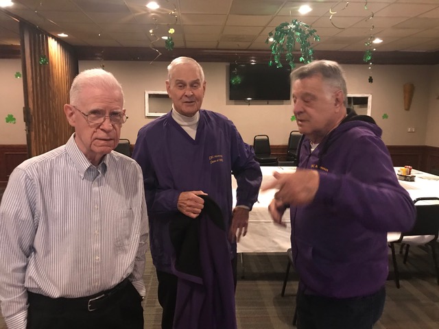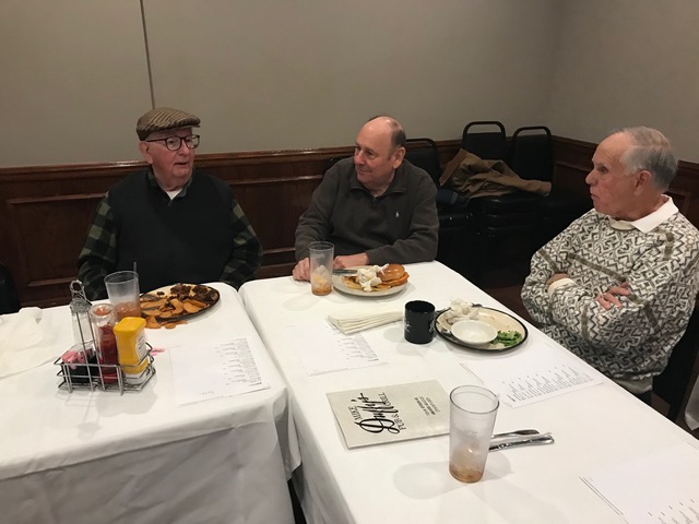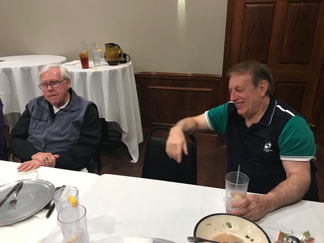 Brother Paul Meyer, FSC from CBCHS was our special guest for Lunch—he lives in the Brothers' House at CBCHS. The 2 Jims seem very happy, but John Rabbitt is ecstatic to once more be in the presence of a Brother.