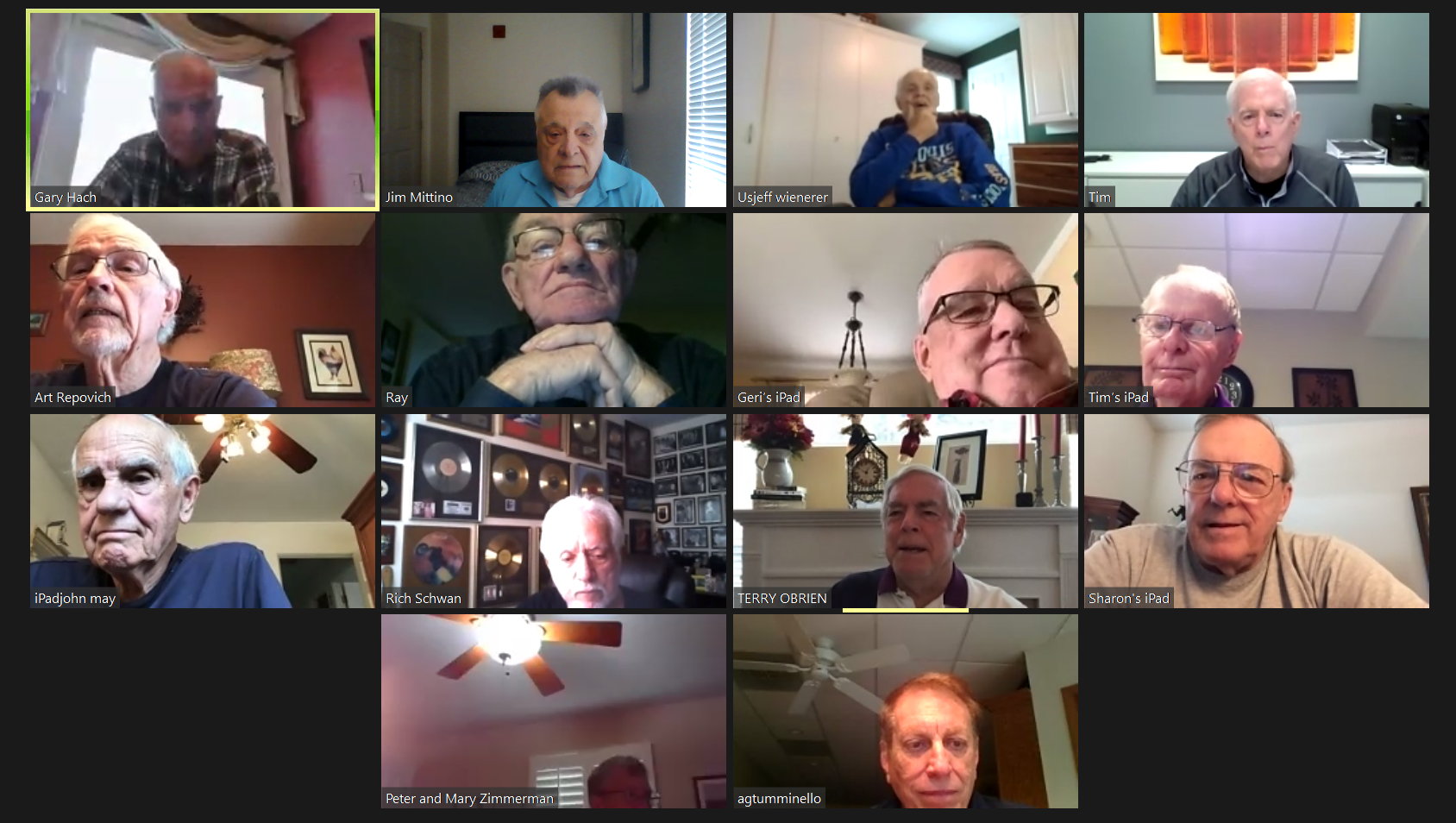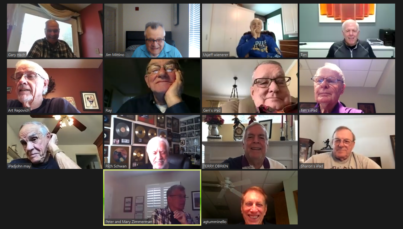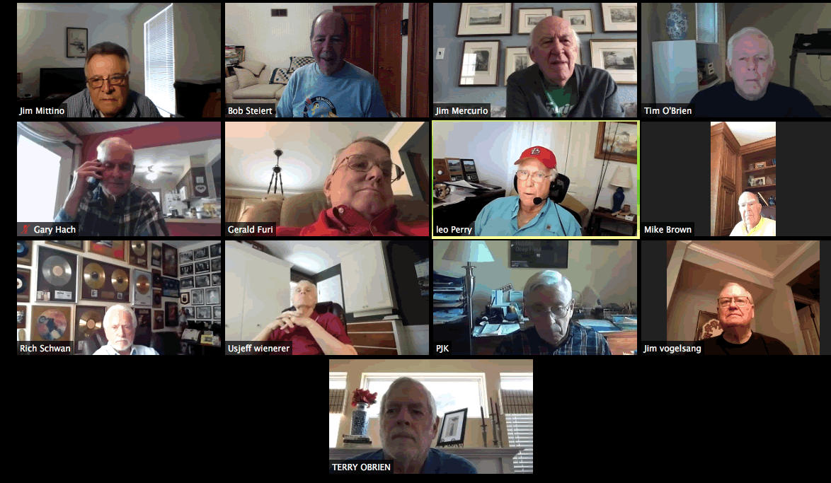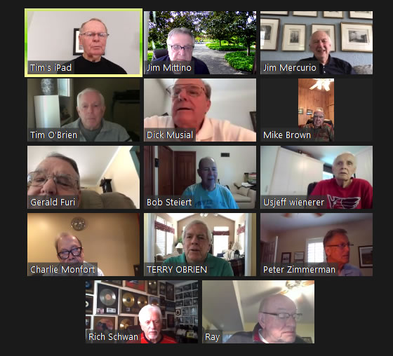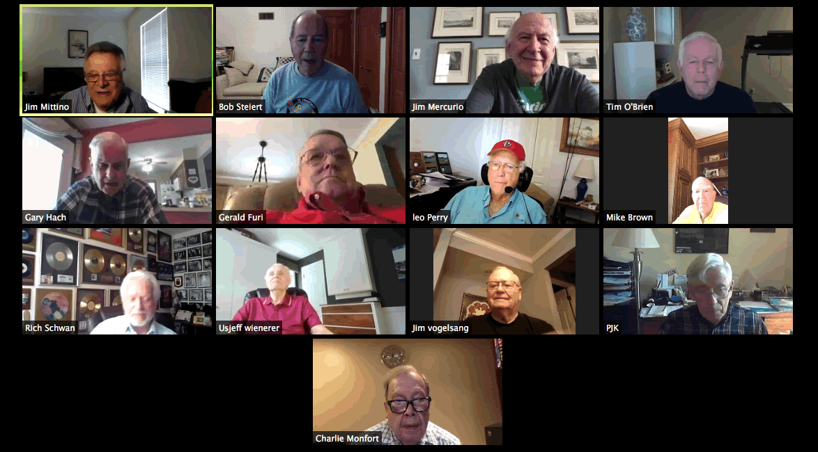 May 22 ZOOM Session (Screen 1)—L-R: (Top Row) Mittino, Bob Steiert, Jim Mercurio, Tim O'Brien