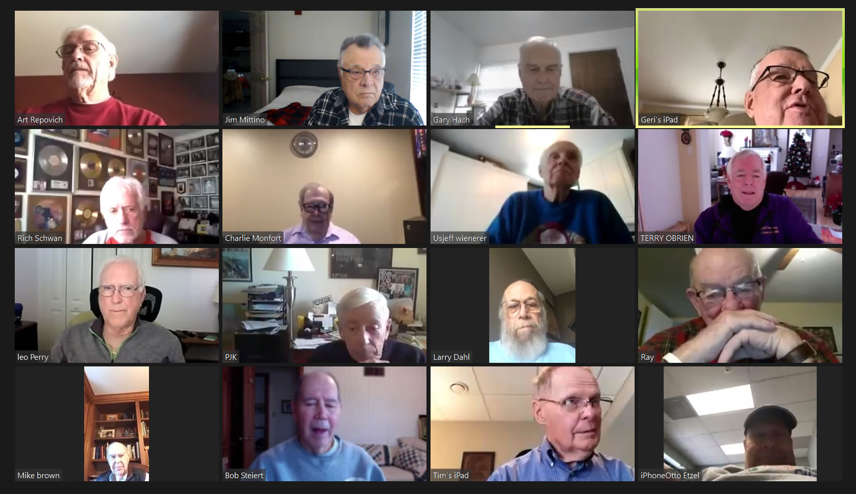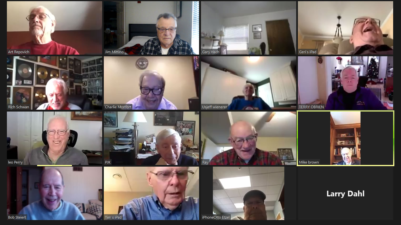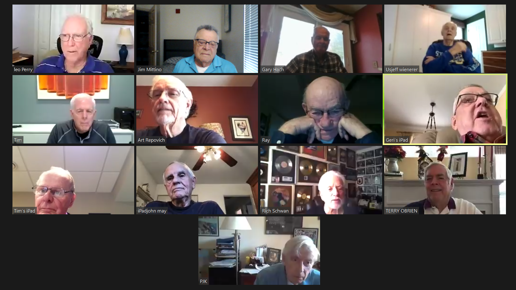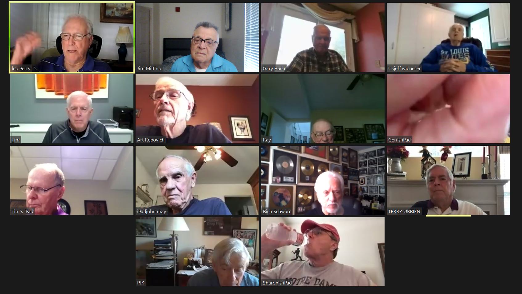May 22 ZOOM Session (Screen 1)—L-R: (Top Row) Mittino, Bob Steiert, Jim Mercurio, Tim O'Brien