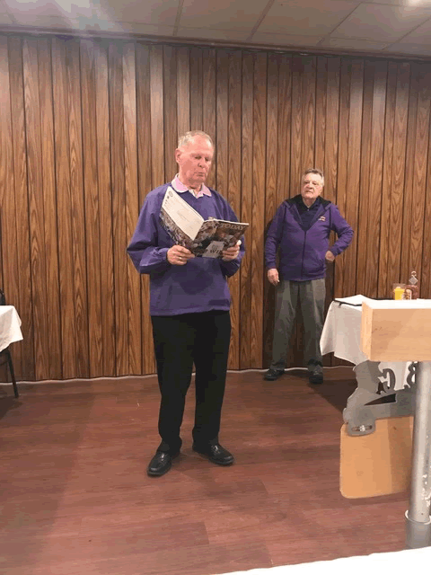 John looks a little less happy now because Duffy's owner has joined this group to ask who would be paying for the damages caused by the Olde Cadets' Hokey-Pokey line last summer.