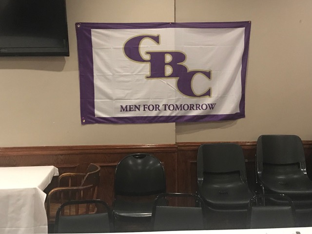 CBC Flag created by today's students and presented to Alums