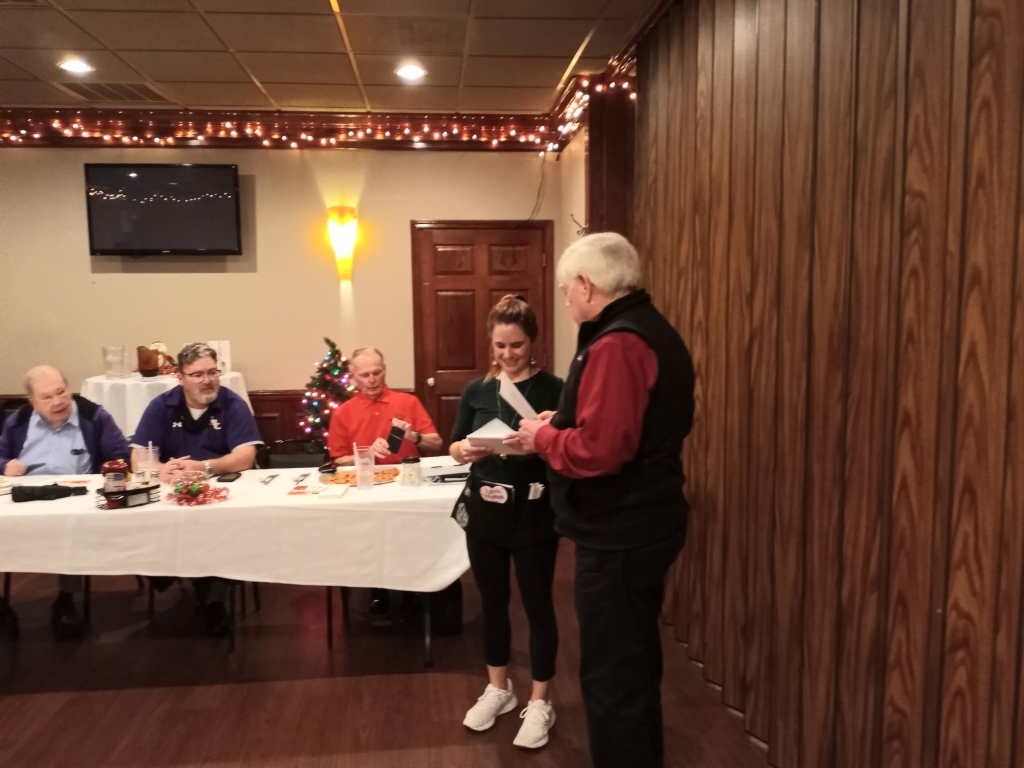 Terry presents a Christmas gift to Val of $385.00 cash. Val baked Christmas cookies for all of us saying we are her favorite customers and she really enjoys waiting on all of us