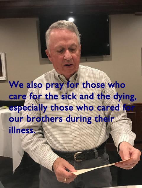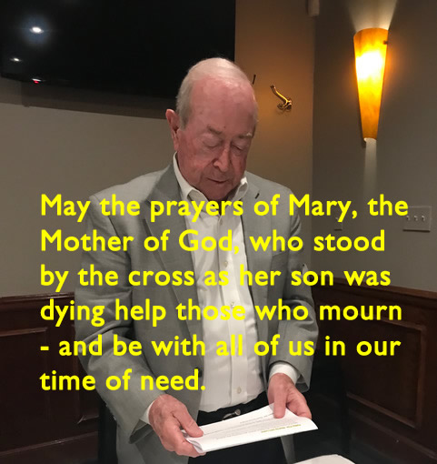 We held a brief Memorial Service remembering Denny Hobart at the beginning, which Jim Mittino has recorded and made available on YouTube. Those present: Hank Deeken, Deacon Tim Dolan, Geri Furi, Gary Hach, Bob Hahn, Pete Kenny, Jim Mittino, Terry O'Brien, Tim O'Brien, Art Repoovich, Rich Schwan, Bob Steiert and Jeff Wiener.