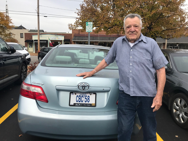 Not to be outdone, Jim proudly poses with his Toyota and its unique plate