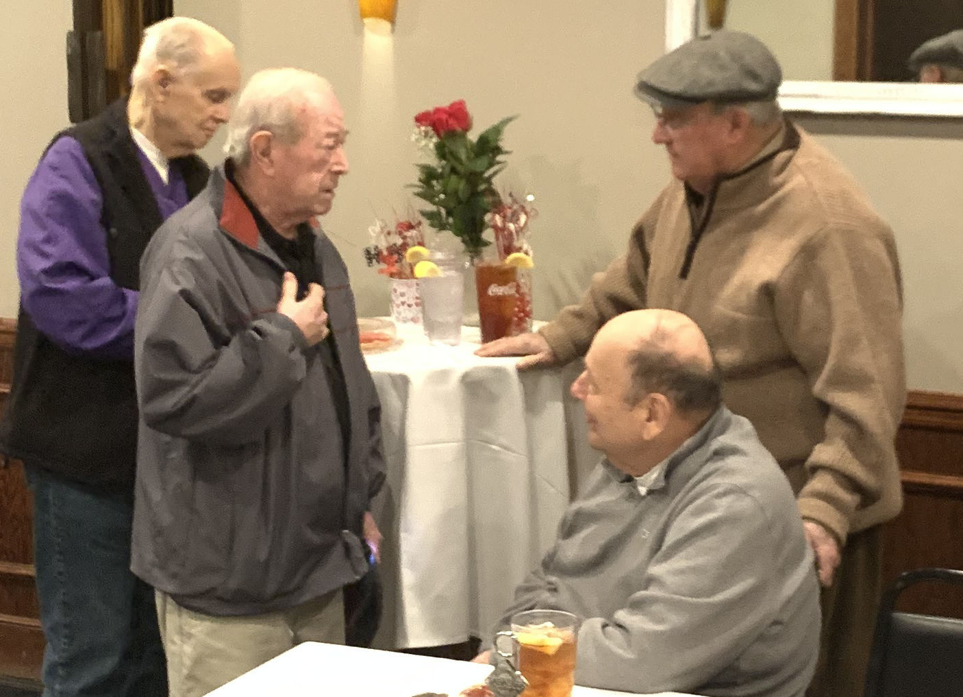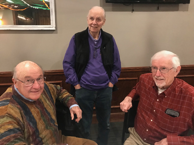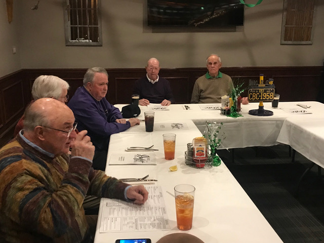 We gathered for a delicious lunch to put the final touches on our forthcoming 65th Reunion in September. Present and accounted for were: Dolan, Doyle, Etzel, Layton, May, Monfort, Terry O'Brien, Pellegrini, Tuminello and Wiener. A great time was had by all!
