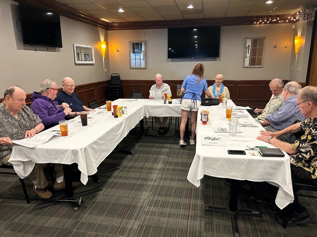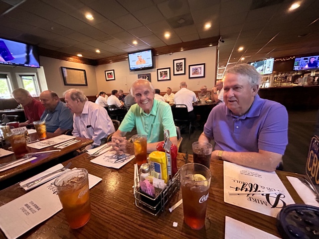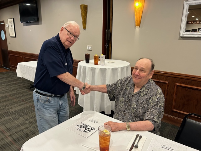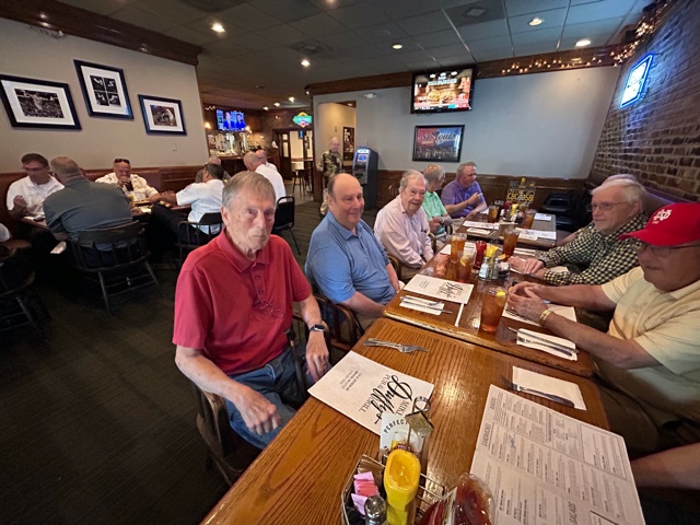 The first of two successive 65th Anniversary Celebrations was held as our regular Lunch Tuesday, September 12, 2023 at Duffy's—click here to view the Lunch slideshow. (The second was a Dinner Celebration with Wives held at Bartolino's in the Drury Inn Forest Park the evening of Wednesday, September 13. You can view a slideshow of the Dinner by clicking here.)