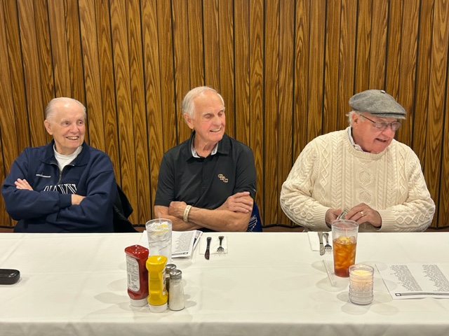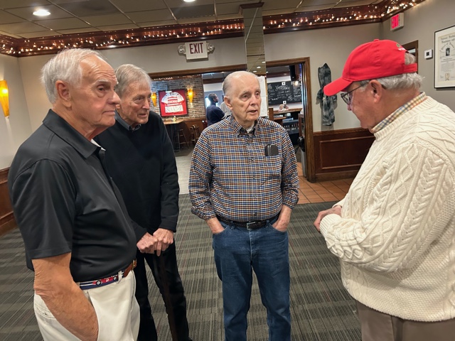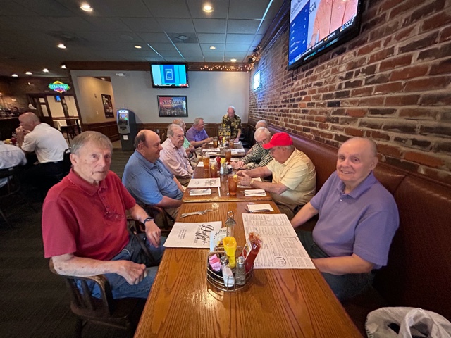 10 good men (in Jewish tradition constitute a Minyan, the minimum number needed for a liturgy) gathered for our Class Lunch at Duffy's on Tuesday, Oct. 10, 2023. Present and accounted for were: Doyle, Etzel, Layton, May, Monfort, Terry O'Brien, Pellegrini, Tuminello Wiener, and Zimmerman.
