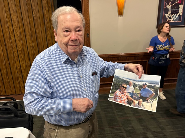 John May brought some old photos taken on Alton Lake with Tom Maher, Charlie Nahlik, et al. on John's boat, "Happy Days", to share with the Lunch attendees.