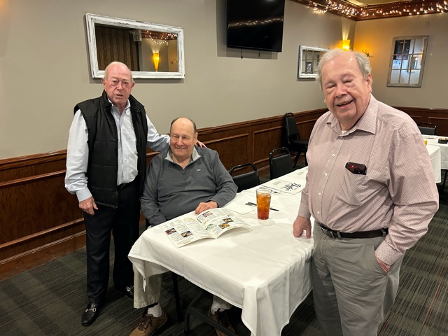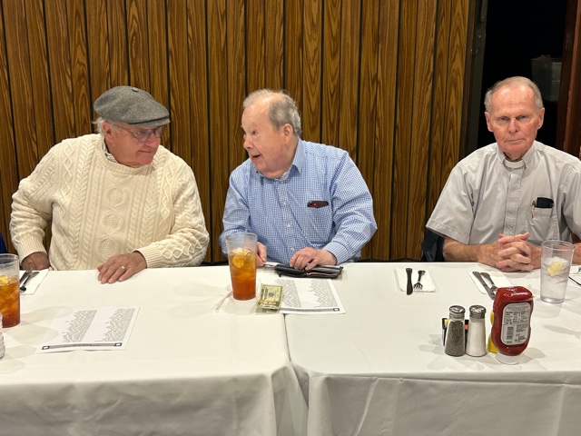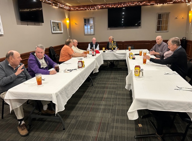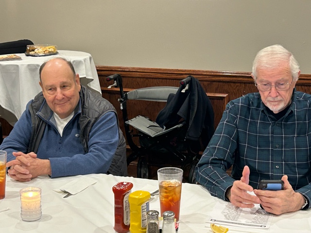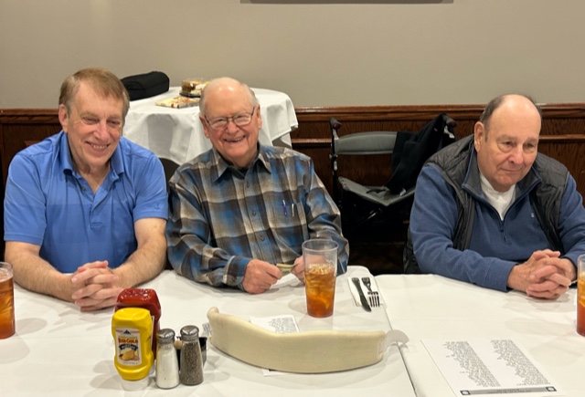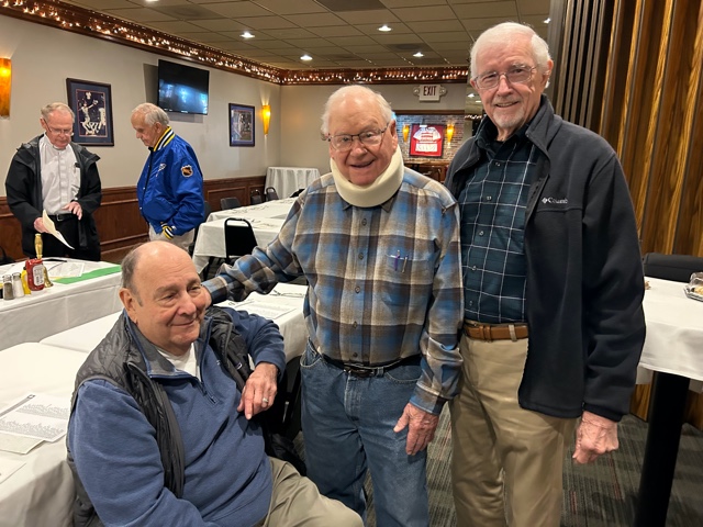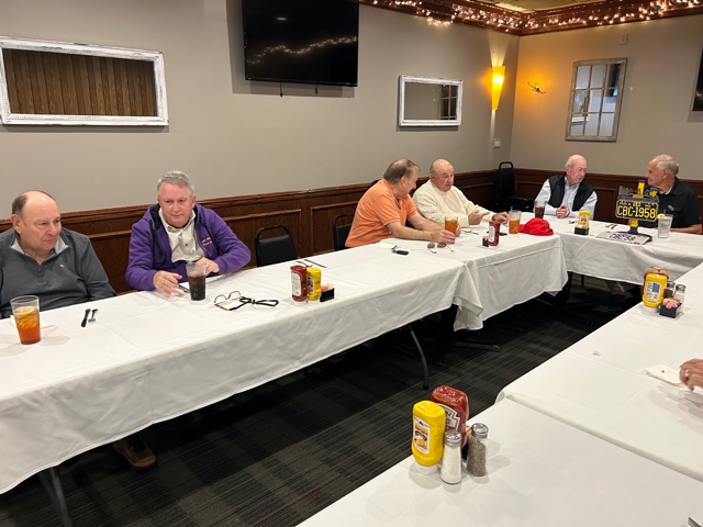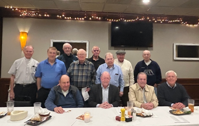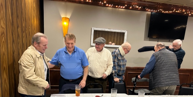 Our first Lunch of the New Year 2023 was more somber than usual, due to the passing of Denis Reinhart. We had a small but enthusiastic group of Brothers in attendance: Tim Dolan, Dick Doyle, Otto Etzel, John May, Charlie Monfort, Terry O'Brien, Frank Pellegrini, Art Repovich. Jeff Wiener and Pete Zimmerman.