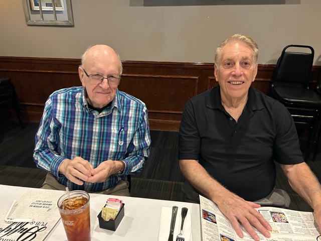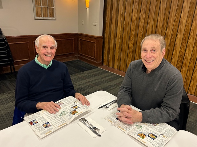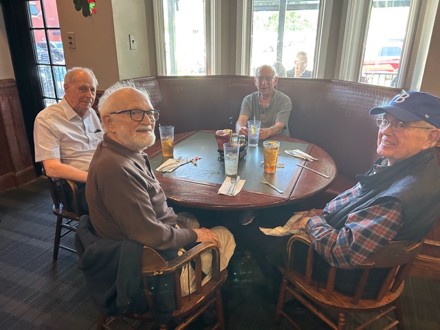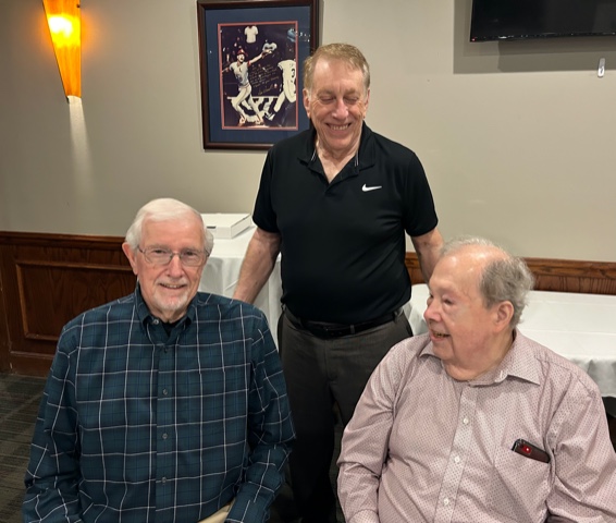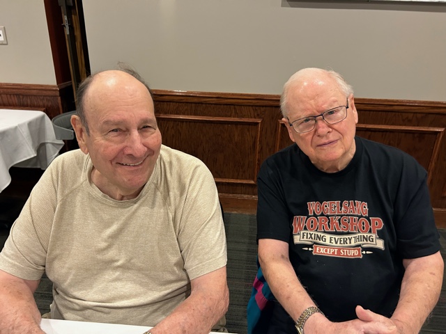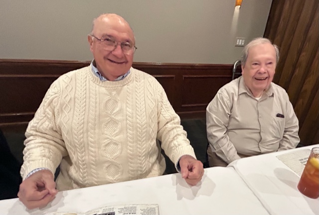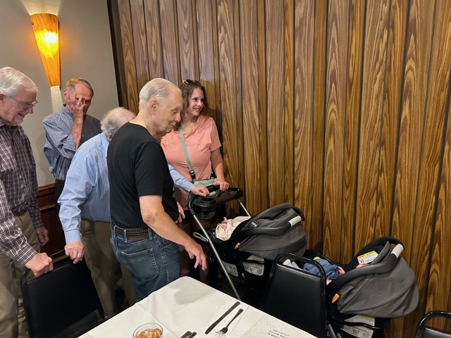 Nobody can ever predict who might attend our lunches, and sometimes there are delightful surprises. Deacon Tim Dolan returns, recovering from his recent illness, and our lunch was graced with not only Jeff wiener's presence, but also that of his wife, Bev, granddaughter Katie and Jeff's twin great-grandkids, Kurtis and Kiera! Add to that Charlie Monfort, Terry O'Brien, Frank Pellegrini, Art Repovich, Tony Tuminello, and Jeff Wiener, with a cameo by the CBCHS Class of 1951 Lunch Bunch, and a Full House is the result.
