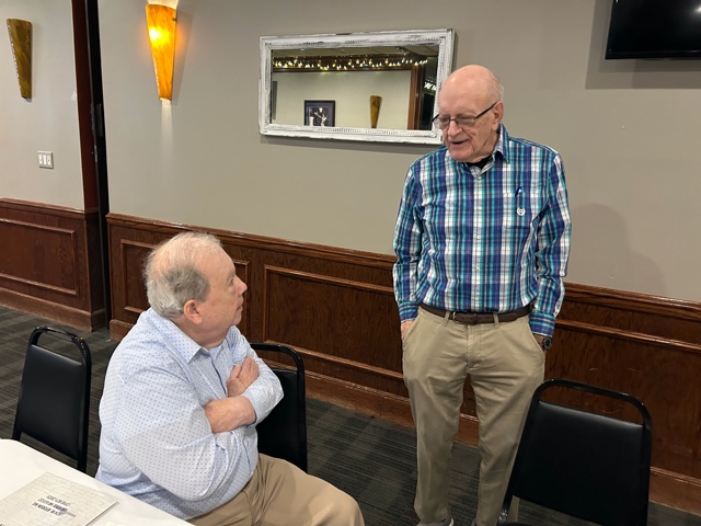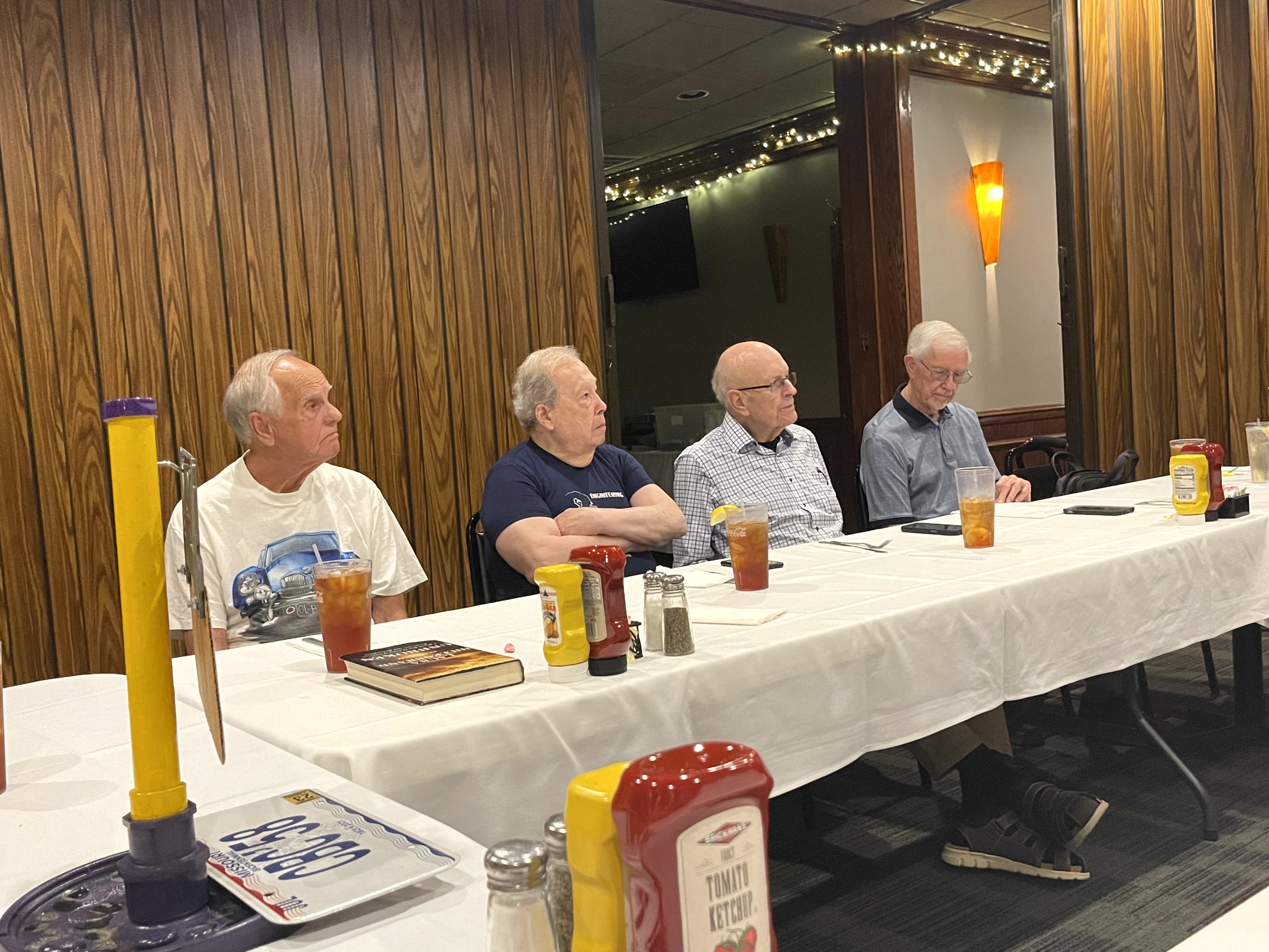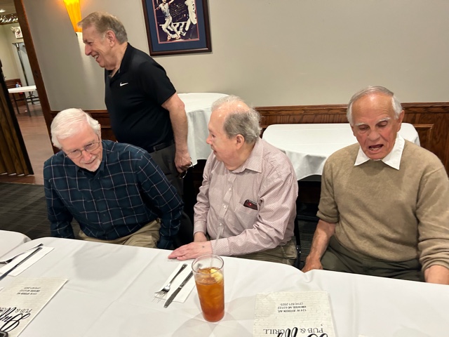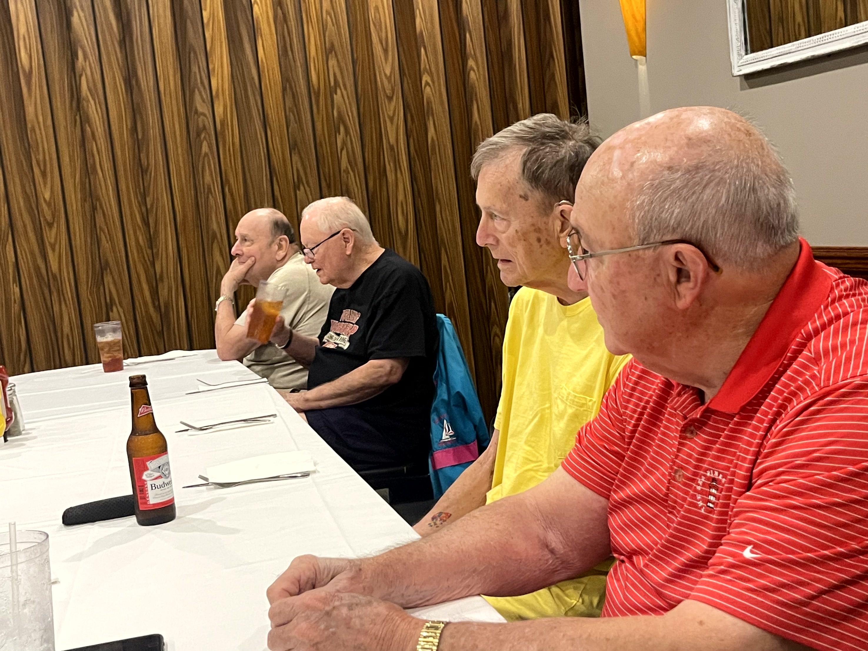 Kudos to Art Repovich who stepped in as photographer while Terry O'Brien took his wife on an Anniversary Cruise! An amazing thirteen Cadets were present and accounted for—including Rich Schwan, who traveled all the way from the wilds of Tennessee!. Mustered were Dr. Dick Doyle, Otto Etzel, John Layton, John May, John Merker, Charlie Monfort, Frank Pellegrini, Art Repovich, Rich Schwan, Tony Tumminello, Jim Vogelsang, Jeff Wiener and Pete Zimmerman.