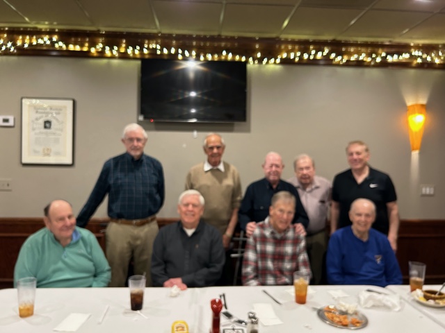 Eleven Cadets were present and accounted for at a really great Lunch—Deacon Tim Dolan, Otto Etzel, John Layton, John May, Charlie Monfort, Terry O'Brien, Frank Pellegrini, Art Repovich, Tony Tumminello, Jim Vogelsang and Jeff Wiener.