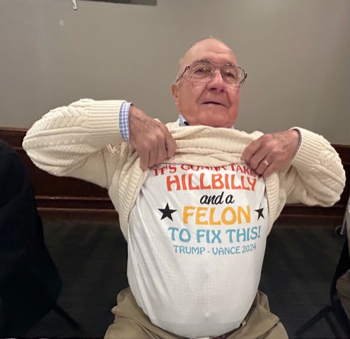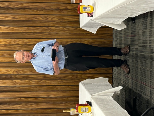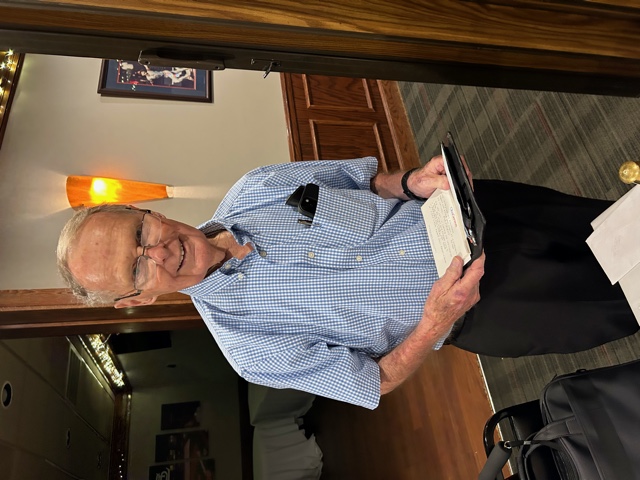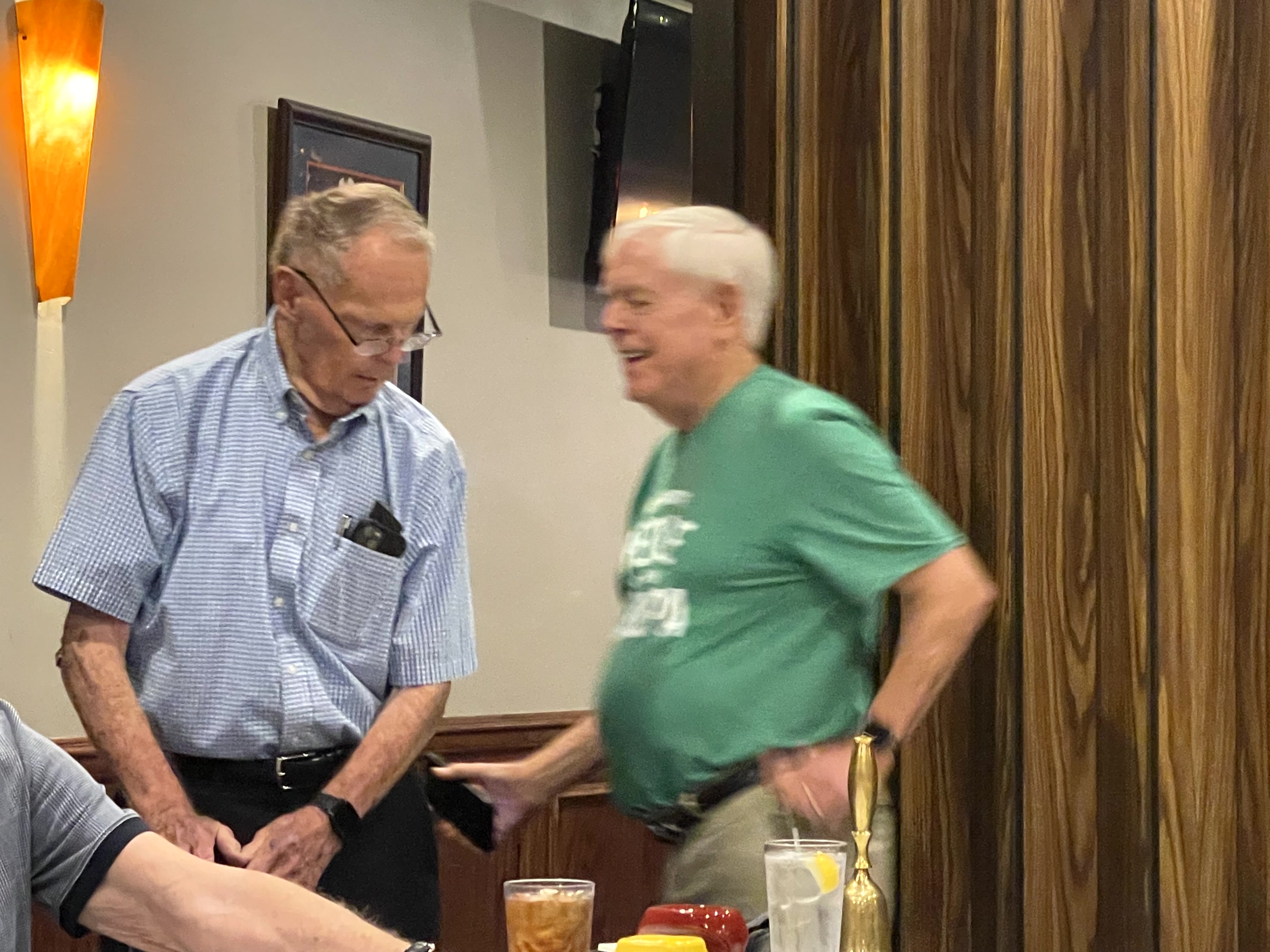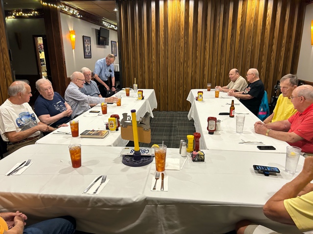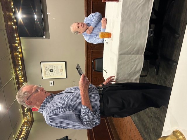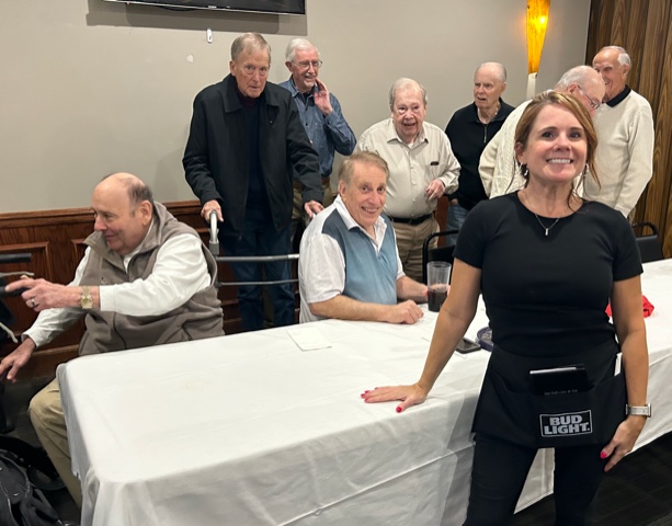 A good turnout for our Christmas, 2024 Lunch—13 guys! The Class also chipped in $260 toweard a Christmas present for our super server, Val.