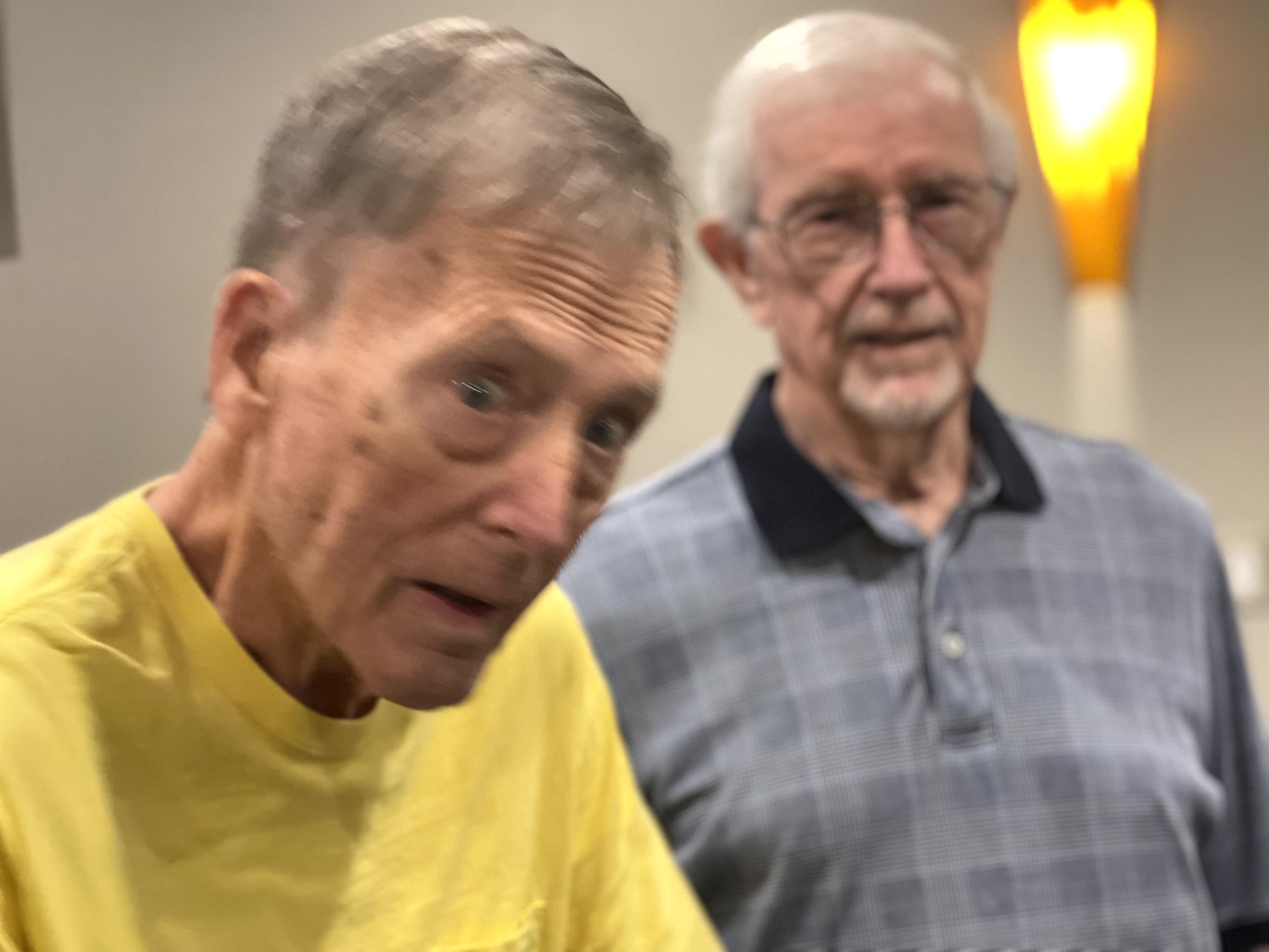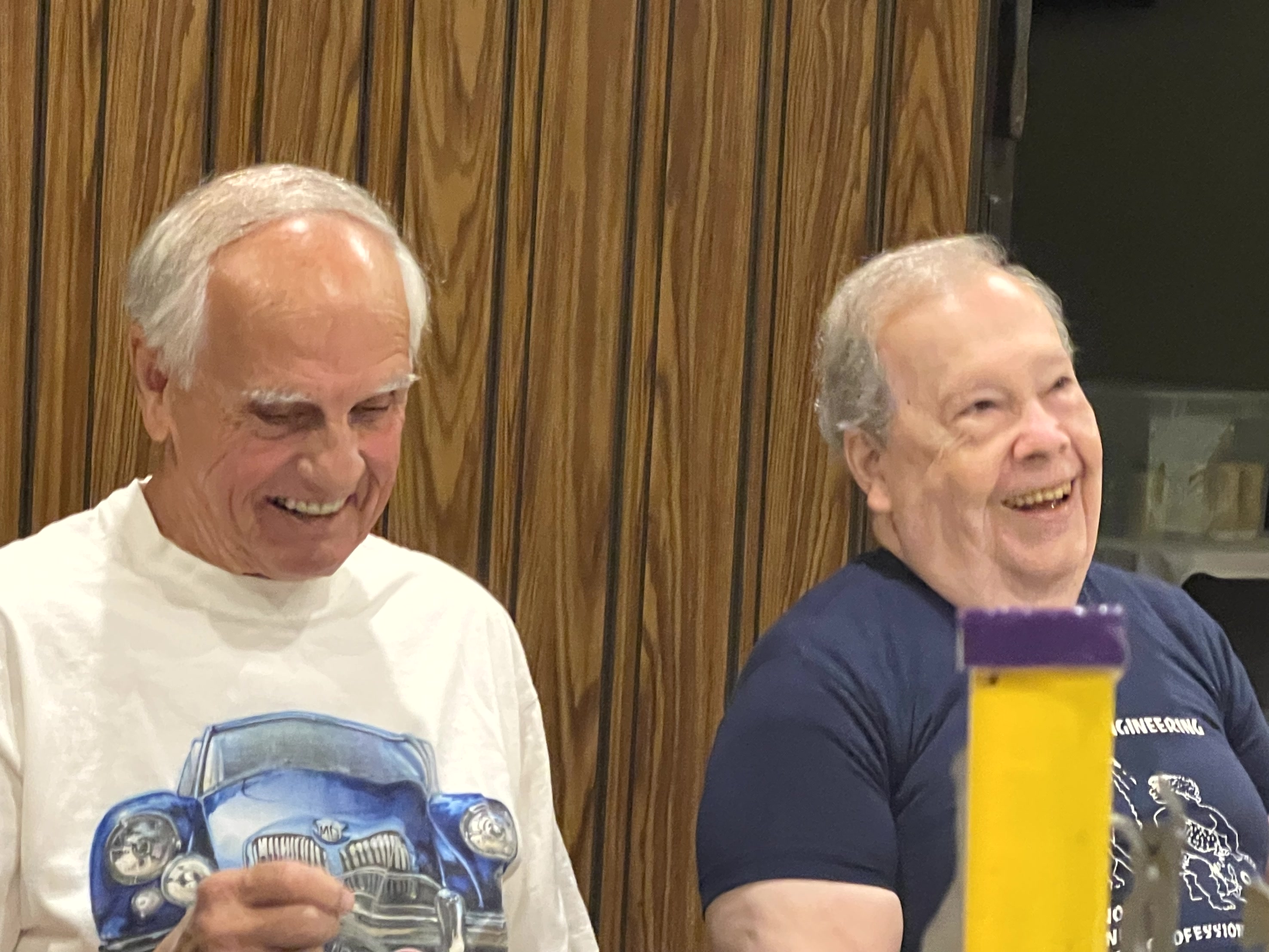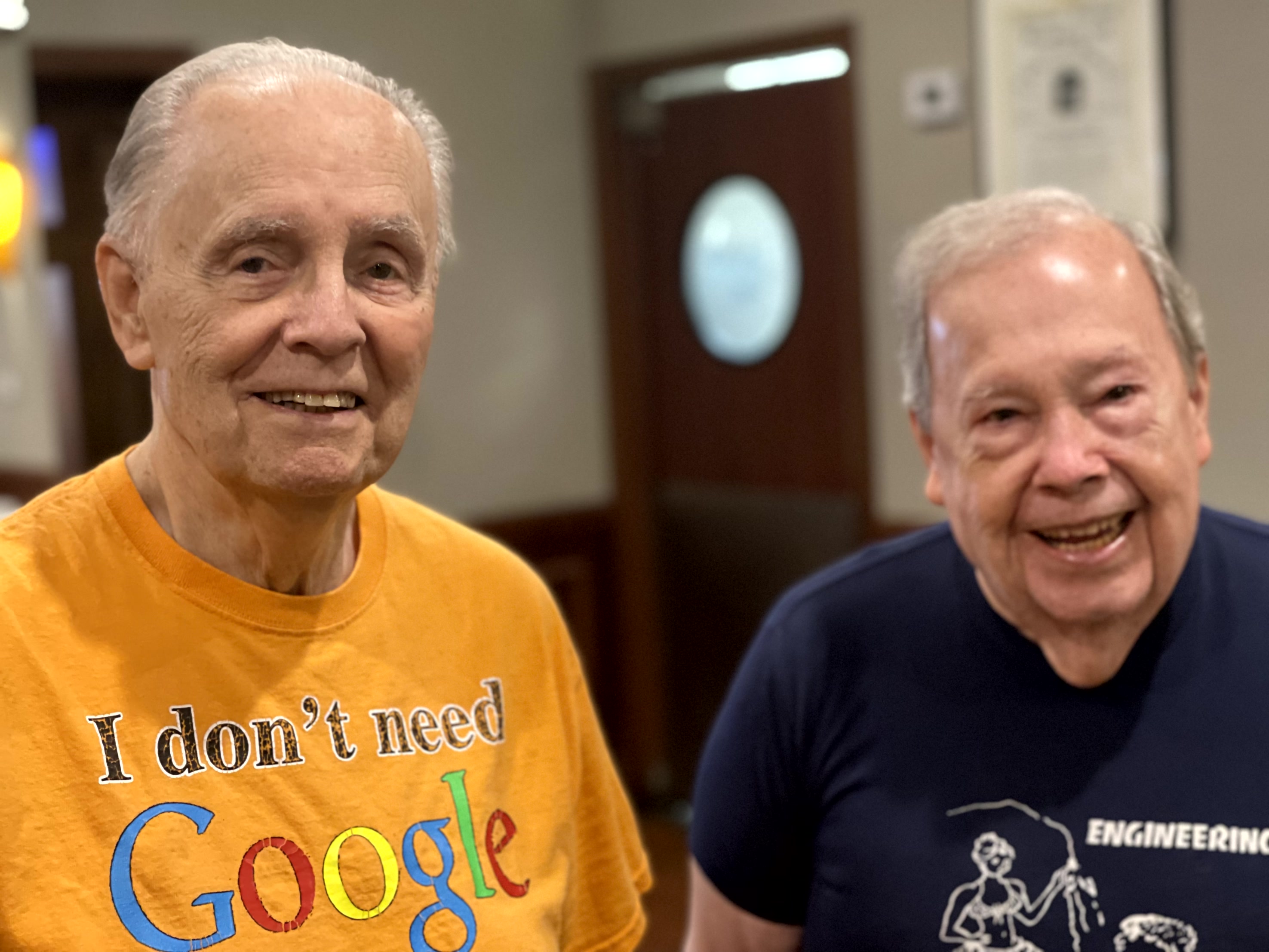 Art shares with Charlie the secret of how to capture photos on his phone as he did for us this past February when he subbed for Terry as Class photographer.