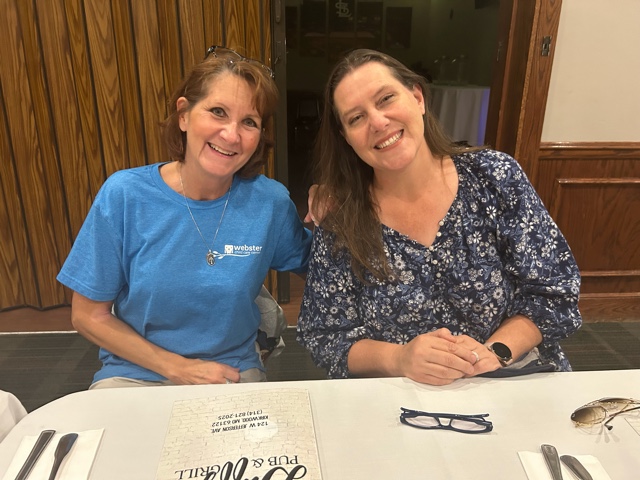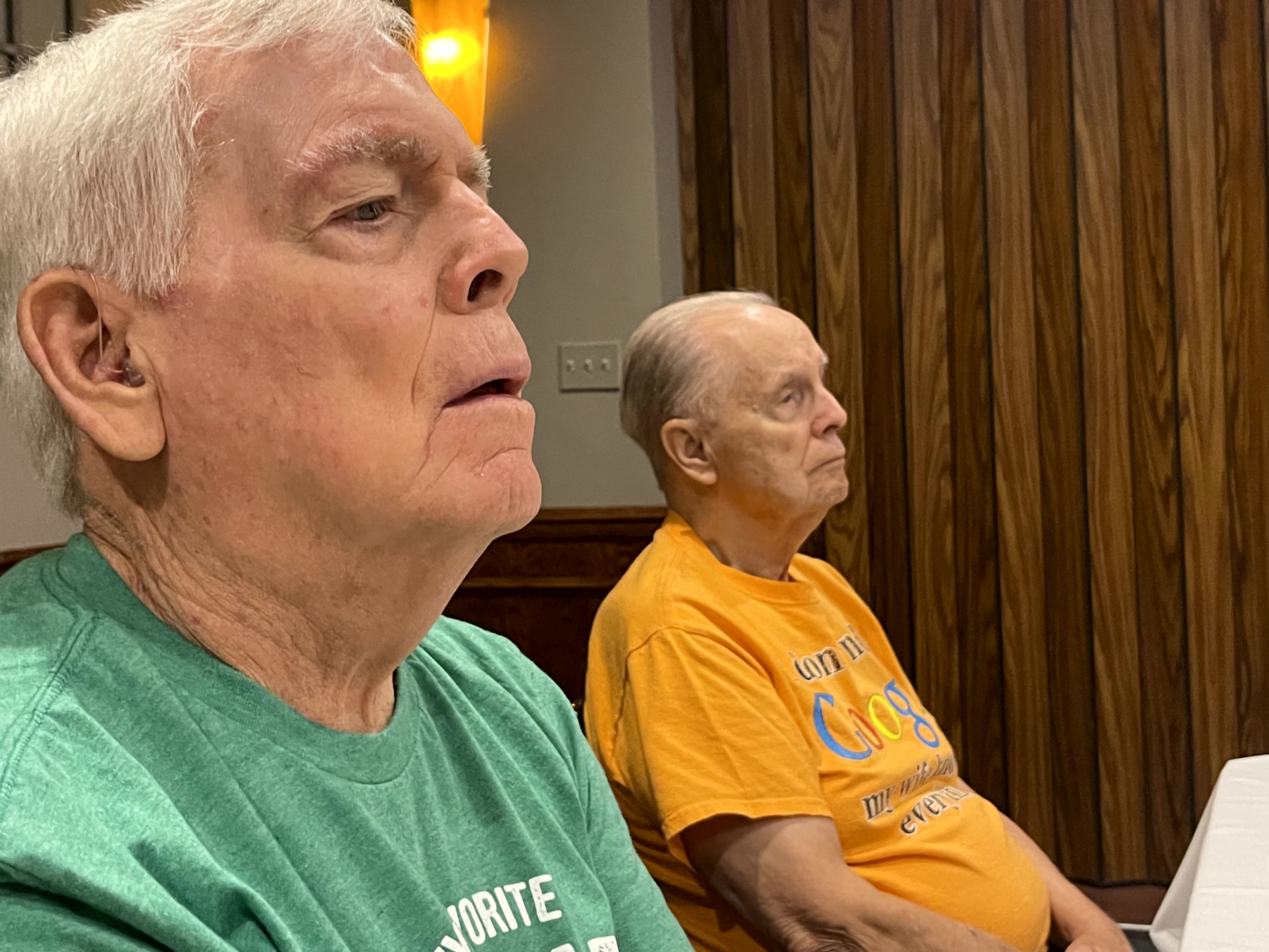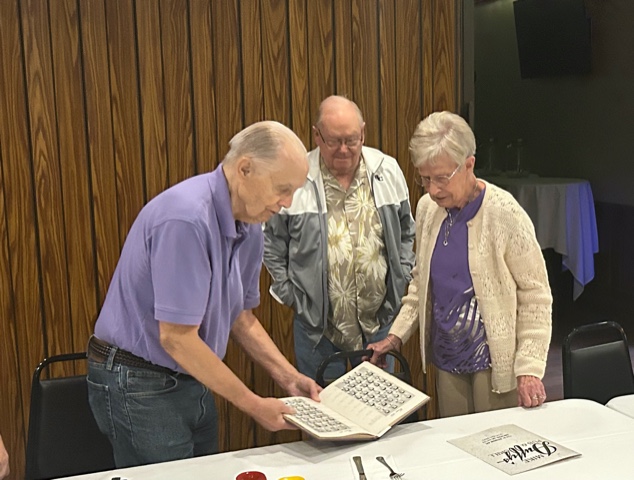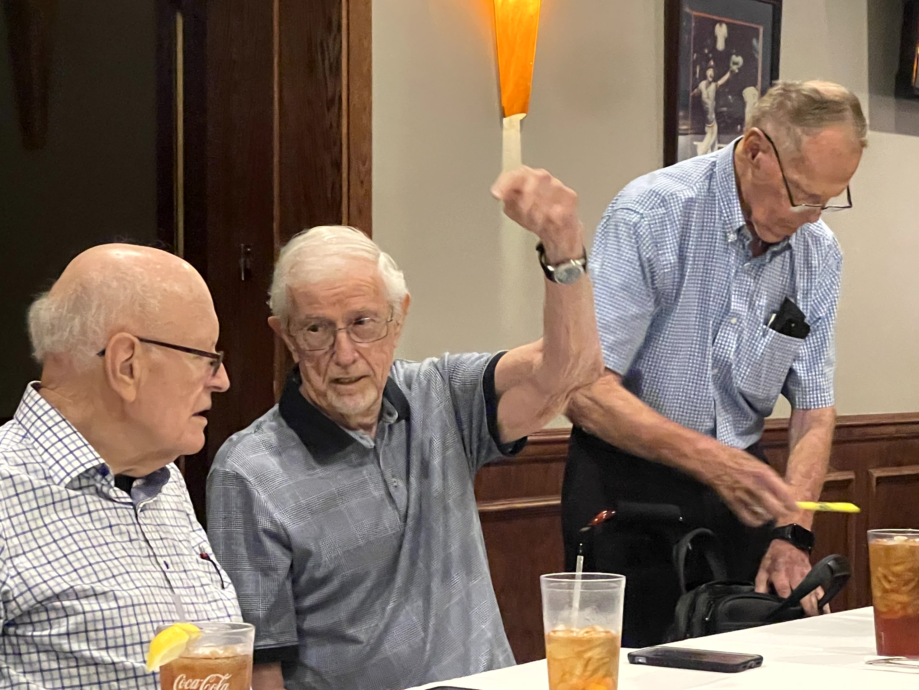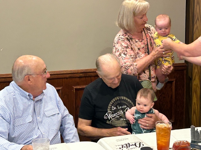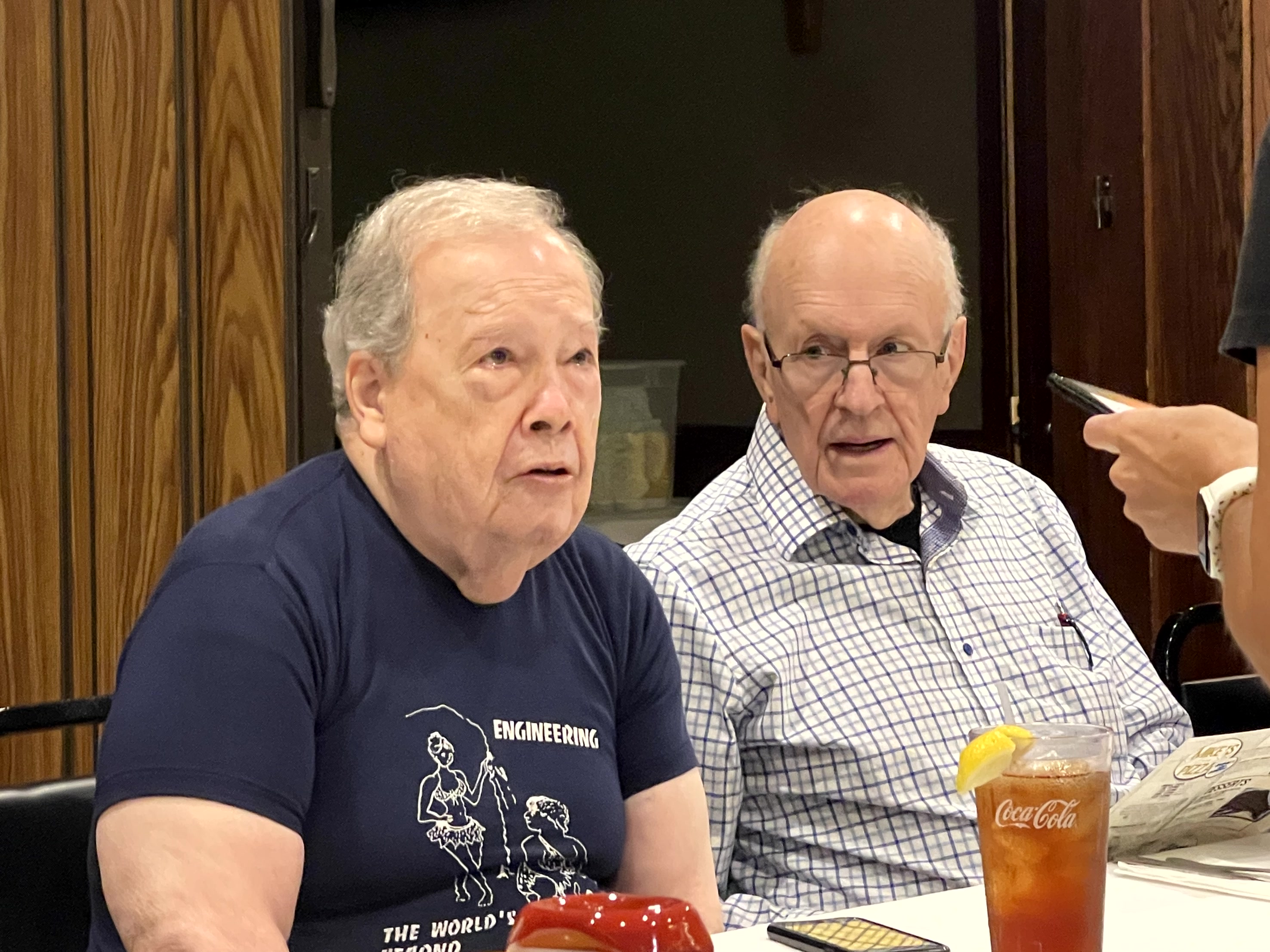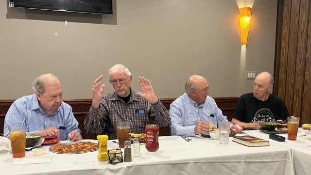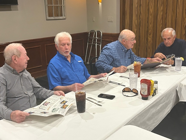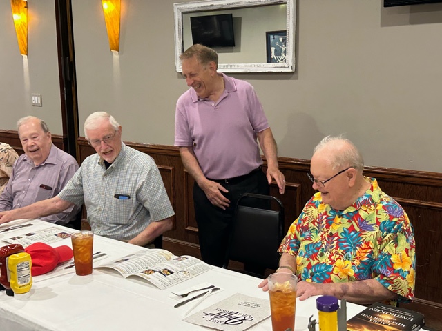While John Layton and Rich are discussing what to order, Frank and John May are still engrossed in the 1955 Guidon.