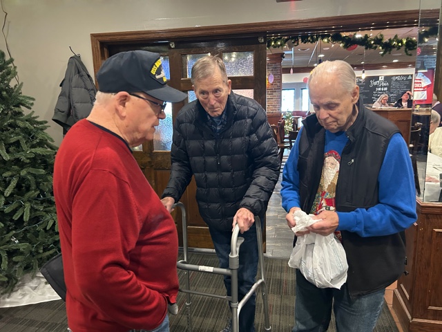 Considering the wintry weather, we had nine guys show up at our lunch today. In fact today was one of our most fun lunches. Many great stories with a lot of laughter! Present and accounted for were Cadets Doyle, Etzel, May, Monfort, Terry O'Brien, Pellegini, Repovich,Tumminello, and Vogelsang.