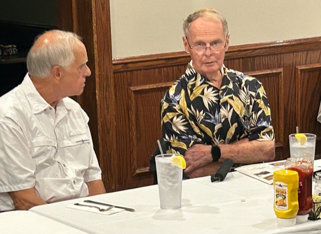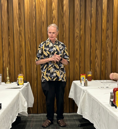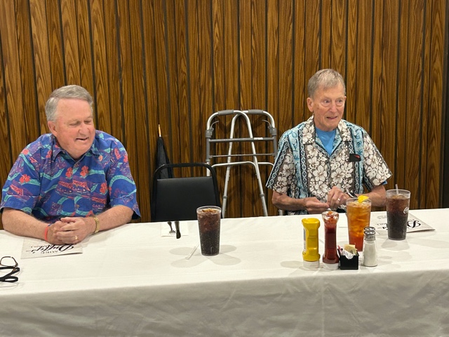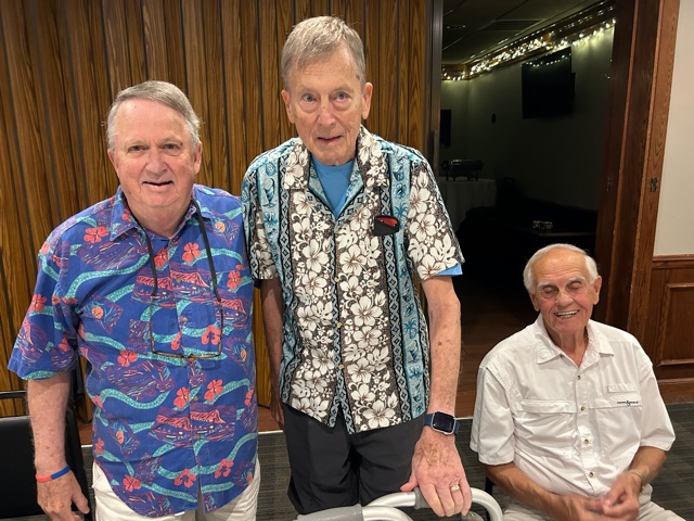 Our July Lunch was the occasion for the annual Hawaiian Shirt Contest, and many Cadets rose spectacularly to the occasion.The Hawaiian Shirt contest resulted in a 3-way tie for the most glaringly colorful attire, shared by Deacon Tim Dolan, Jim Vogelsang and Terry O'Brien; each of them will get a free Lunch at a future date. We'll have to see whether our August Lunch—the occasion for the T-Shirt Contest—can top thi!