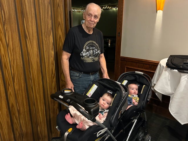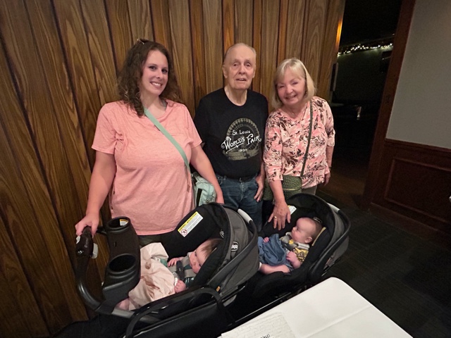 Jeff Wiener arrives, with his wife, Bev, his granddaughter Katie, and two great-grandchildren—the twins Kiera and Kurtis!