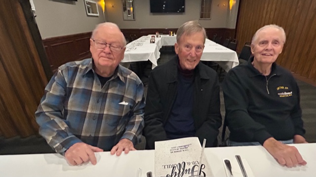 Our October Lunch was a more somber gathering, given the recent passings of Tim Dolan and Larry Dahl. Eleven Cadets were present: Dick Doyle. John May, John Merker, Charlie Monfort, Terry O'Brien, Frank Pellegrini, Art REepovich, Tony Tuminello, Jim Vogelsang, Jeff Wiener and Pete Zimmerman.!