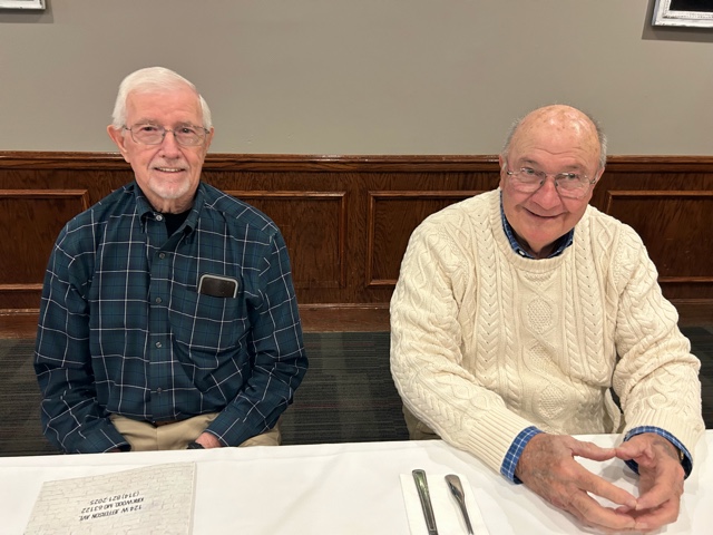 What an amazing Lunch! Present and accounted for were 11 cadets and four distinguished guests: John Layton, John May, Charlie Monfort, Terry O'Brien, Frank Pellegrini, Art Repovitch,Rich Schwan—all tyhe way from Hermitage, TN!—Bob Steiert, Tony Tuminello, Jim Vogelsang, Jeff Wiener, and Pete Zimmerman from our Class; Pilip Reilly (CBCHS new President), Carla (Denny) Reinhart, and Gary Hach's two daughters!