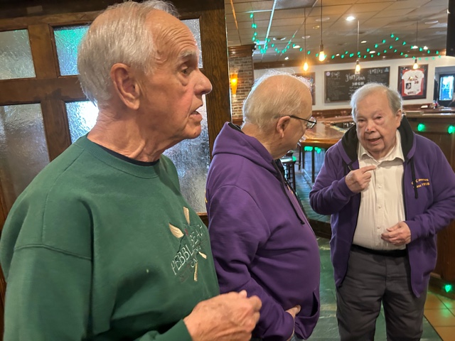 Duffy's surprised us by hosting a funeral luncheonn in our usual room, so we were out amongst the crowd. However, Terry took some of the very best pictures in the new, challenging seating layout! May, Merker, Monfort, Terry O'Brien, 'Pellegrini, Repovich,Tuminello Vogelsang and Wiener were in attendance, and enjoying every minute of it!