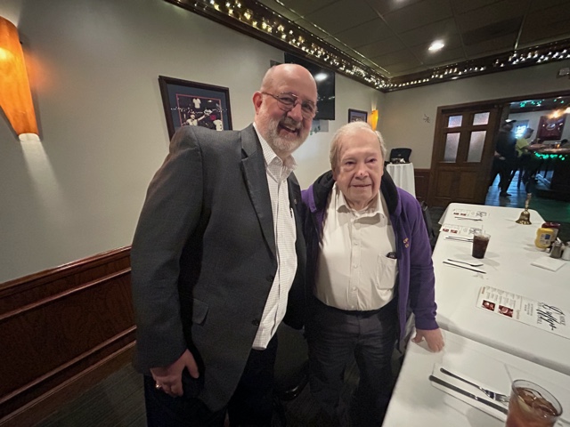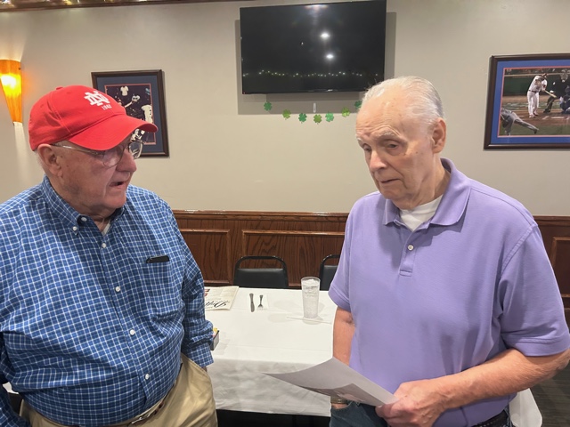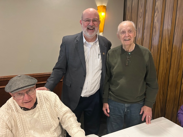 Our May lunch was honored by the presence of a special guest, Rich Schwan, who came all the way from Hermitage, TN. The nine Cadets present (Doyle, Layton, May, Monfort, Terry O'Brien, Pellegrini, Repovich, Tuminello, and Wiener) sure did enjoy seeing Rich again!