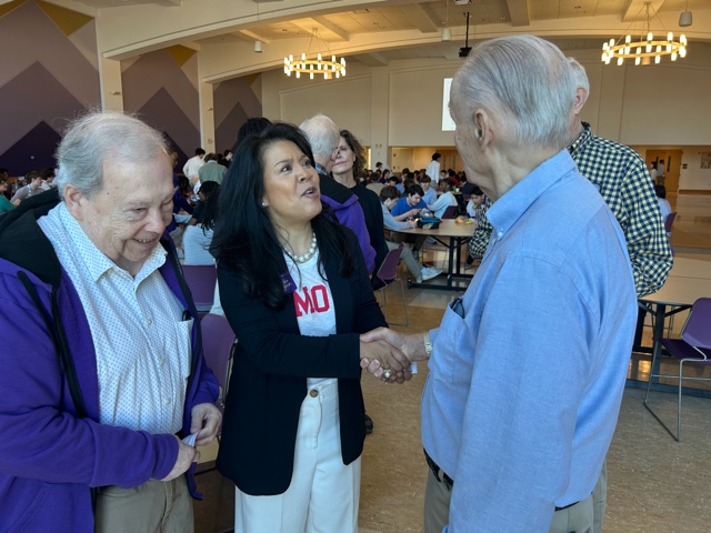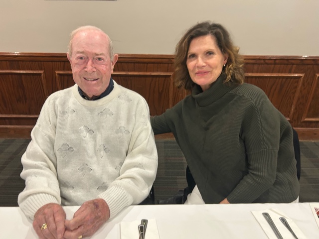 Our April lunch was honored to have two special guests, Philip Riley, President and Liz Millikan Director Of Leadership Giving at CBC (both of whom hosted our Class last month out at CBC). The nine Cadets present (Layton, May, Monfort, Terry O'Brien, Pellegrini, Repovich, Tuminello, Vogelsang and Wiener) sure did enjoy our guests. Philip Riley was also at our March lunch at CBC; he said that he really enjoys his time with us and said that Michael Jordan told him the Class of '58 is special.