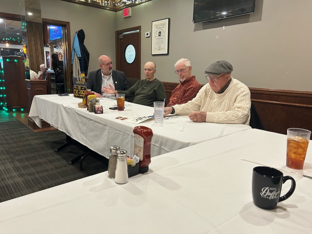 Despite wicked winter weather, we managed to host 10 Cadets—made possible by an ever-so-brief appearance of Dr. Dick Doyle. In addition, our Lunch was graced by John Layton, Dr. Charlie Monfort, Terry O'Brien, Frank Pellegrini, Art Repovich, Tony Tuminello, Jim Vogelsang, Jeff Wiener and Pete Zimmerman.