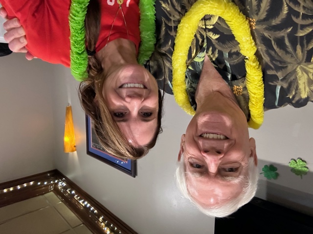 Back in 2019, here is what Frank wore on Hawaiian Shirt Day. Way beyond restrained; now see in the next picture what six years hath wrought!