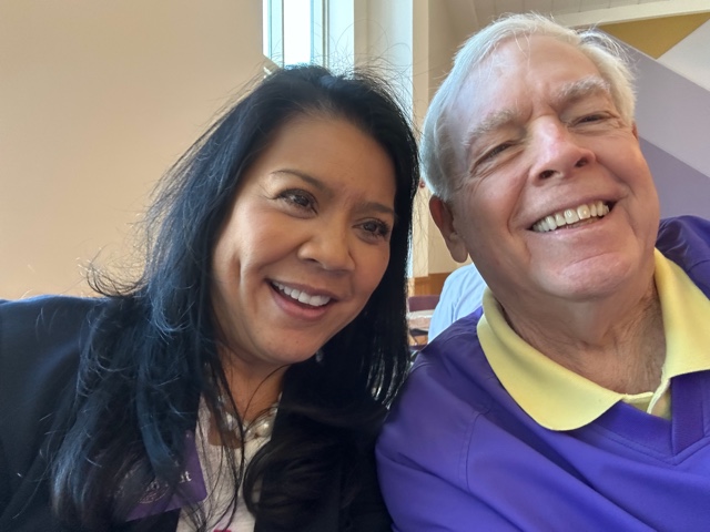 Jim is beaming, with two lovely ladies on each side: Liz Millikan the right (Director of Planned Giving) and Christina Schellhardt (Vice President Development on the left).