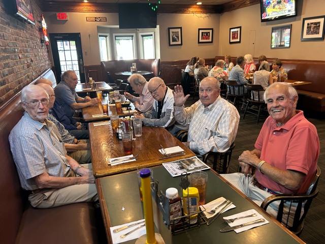 August was a cozy Lunch at which the Brothers enjoyed a break in the rain. Doyle, Layton, Merker, Monfort, Pellegrini, Repovich (who was our photographer for the day!),Tuminello Vogelsang and Wiener were the attendees!