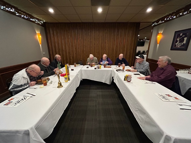Defying Winter's bluster, we had nine guys show up at our lunch today, and we all had a grand time. Present and accounted for were Cadets May, Merker, Monfort, Terry O'Brien, Pellegini, Repovich,Tumminello, Wiener, and Vogelsang.