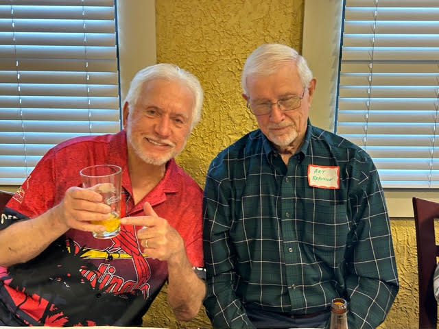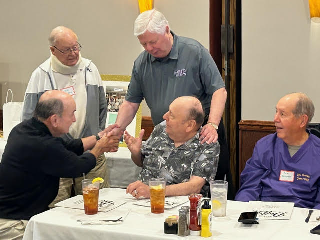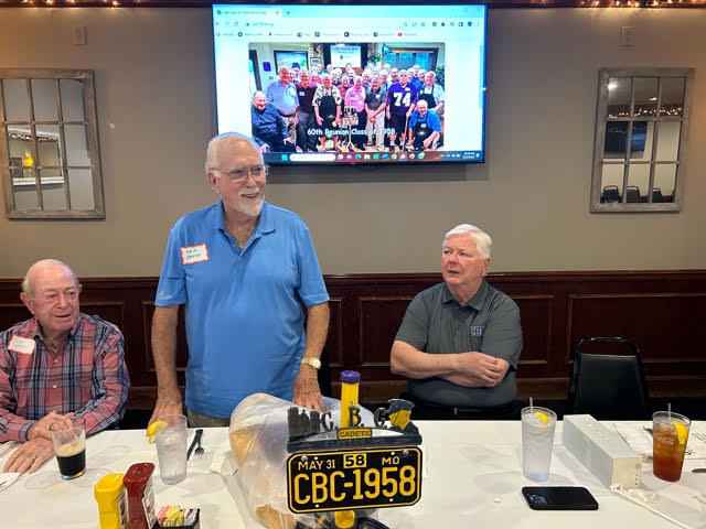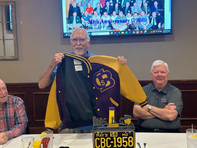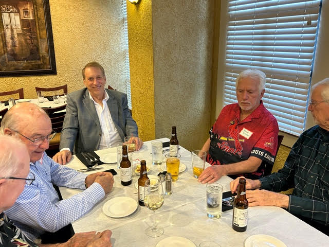 We celebrated the 65th Anniversary of our Graduation with a Lunch at Duffy's on Tuesday, September 12, 2023 and a Dinner (with wives) at Bartolino's in the Forest Park Drury Inn Wednesday evening, September 13. Both events had an outstanding turnout: Bill Bertke, Tim Dolan, Dick Doyle, Otto and Rosemary Etzel, Geri Furi, Marty Hadican, Peter and Patricia Lynn Kenny, John Layton, John May, Charlie Monfort, Terry and Kathy O'Brien, Frank Pellegrini, Ken Perry, Art Repovich, Rich Schwan, Bob Steiert, Tony Tumminello,, Jim Vogelsang, Jeff Wiener, Pete Zimmerman and, representing CBCHS, Michael Jordan! Class members from seven states (FL, GA, KS, MD, MI, MO and TN) were in attendance.